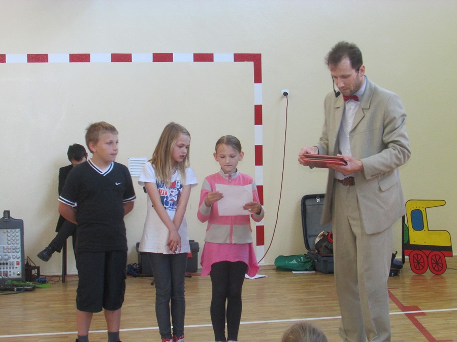 To już kolejny rok, gdzie uczniowie z klas 0-IV raz w miesiącu spotykali się z Panią Muzyką. Poznawali muzykę ludową i dworską, instrumenty i ich budowę, twórców muzyki oraz ich utwory. Na każdej lekcji uczniowie byli też aktorami, aby wiedza przekazywana przez artystów z Agencji MAT w Olsztynie była łatwa i przyjemna. Co miesiąc odbywał się konkurs wiedzy o muzyce. Zwycięzcy spotkali się w maju, w pisemnych eliminacjach półfinałowych, a w czerwcu odbył się finał. I miejsce (po wielu dogrywkach) zajęła Wiktoria Skarpetowska, II miejsce - Dominik Turowski a III miejsce - Weronika Nortman – wszyscy z klasy III.