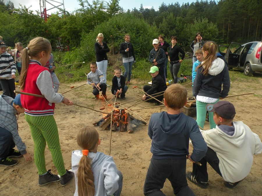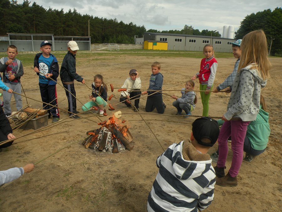 23 czerwca uczniowie klasy III byli na ognisku, które przygotowali rodzice. Zaczęliśmy od zabawy w podchody. Grupa dziewcząt szybko odnalazła grupę chłopców, wykonując po drodze zadania z ukrytych listów. Drugie zadanie to turniej, kto zna więcej piosenek. Był remis dla obydwu grup. Czas spędzony przy ognisku to głównie zabawy. Był mecz piłki nożnej, rozgrywki w „Dwa ognie”, zabawa w Kolory, zabawy z chustą Klanzy. Po takim zmęczeniu kiełbaska musiała smakować.