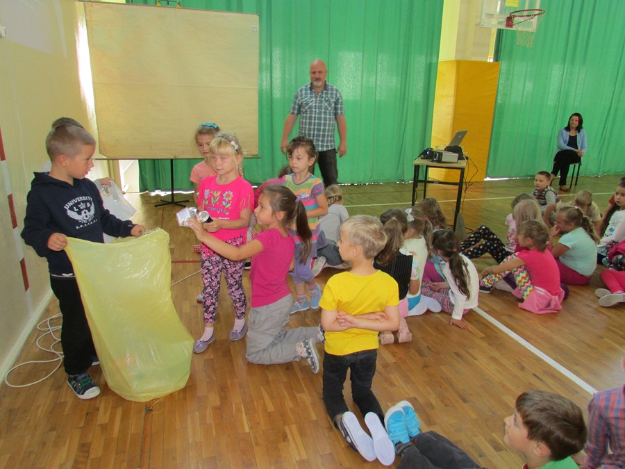 15 września w naszej szkole odbyły się warsztaty w ramach „Gminnego programu edukacyjnego z zakresu właściwego postępowania z odpadami”. Uczniowie klas 0 - VI poznali zasady prawidłowego gospodarowania odpadami komunalnymi. Przypomnieli sobie jakie są rodzaje odpadów i jak powinno się je segregować. Dowiedzieli się również wiele na temat odpadów niebezpiecznych, do których zaliczamy m.in. baterie, przeterminowane leki, zużyte urządzenia elektryczne i elektroniczne, opakowania po farbach, zużyty olej silnikowy, zaolejone szmaty i ścierki.