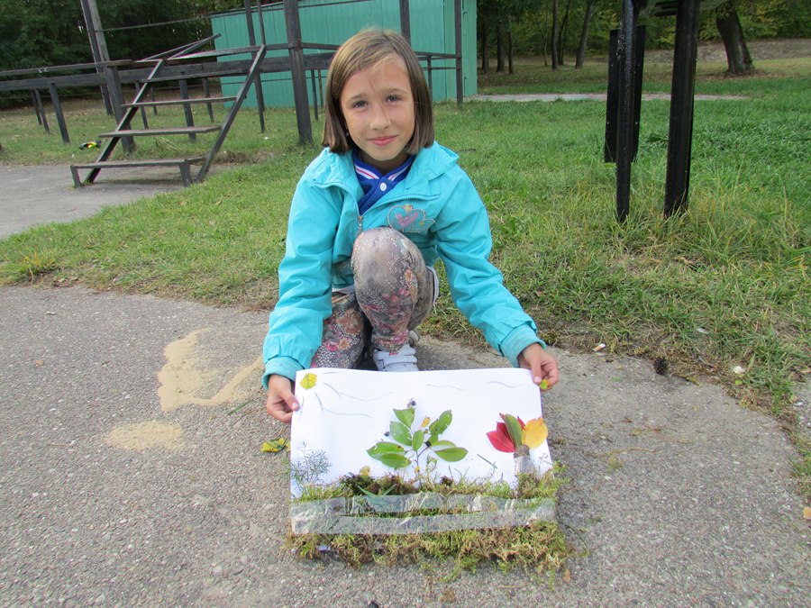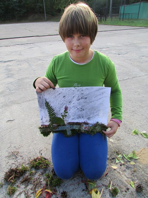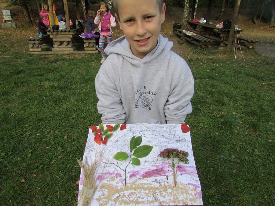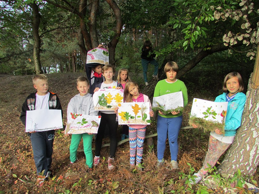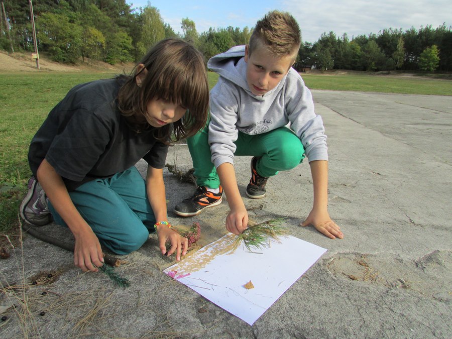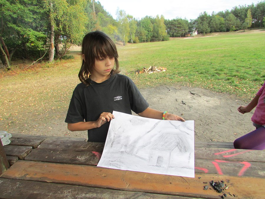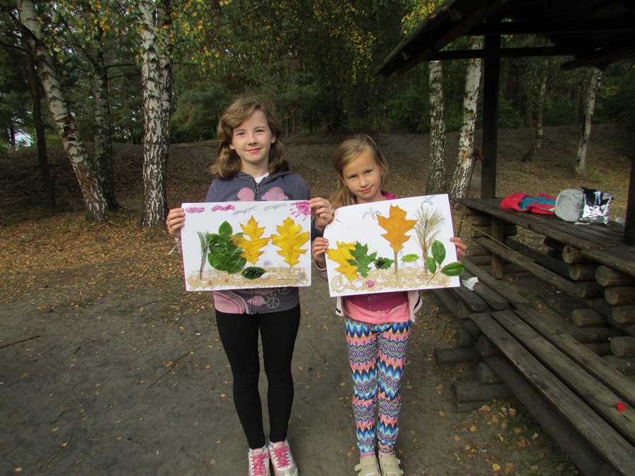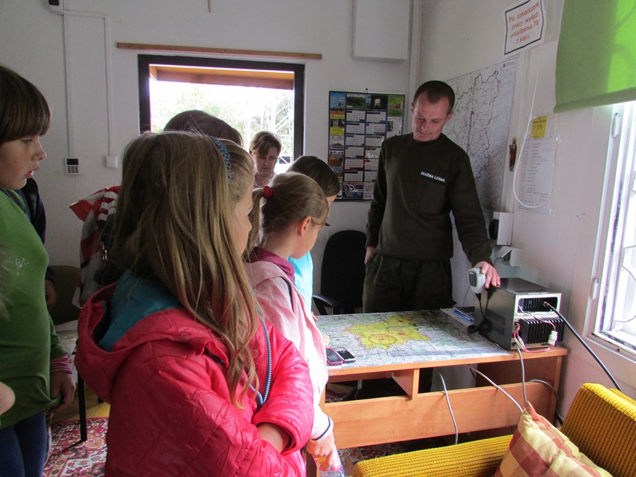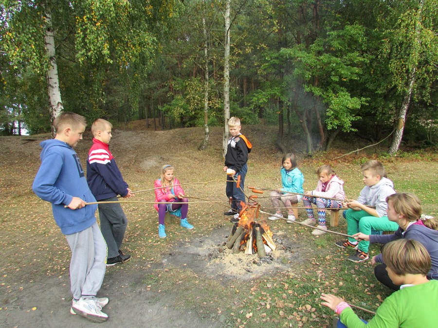 Następnie udaliśmy się do punktu kontrolnego gdzie w celu ochrony przeciwpożarowej monitorowane są lasy. Dzieci zadawały dużo pytań dotyczących częstotliwości i przyczyny pożarów. Dalsze część zajęć przebiegła na skraju pobliskiego lasu przy ognisku przygotowanym przez Pana podleśniczego. Uczniom towarzyszyła radosna i twórcza atmosfera. Dzieci przygotowały oryginalne obrazy z darów przyrody. Bardzo dziękujemy Panu podleśniczemu za ciekawe zajęcia