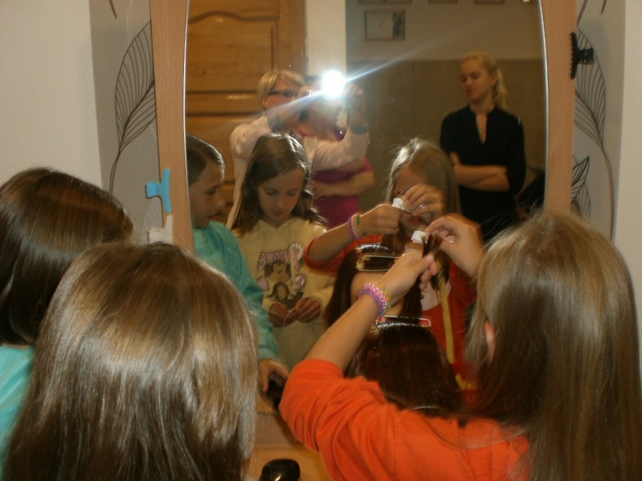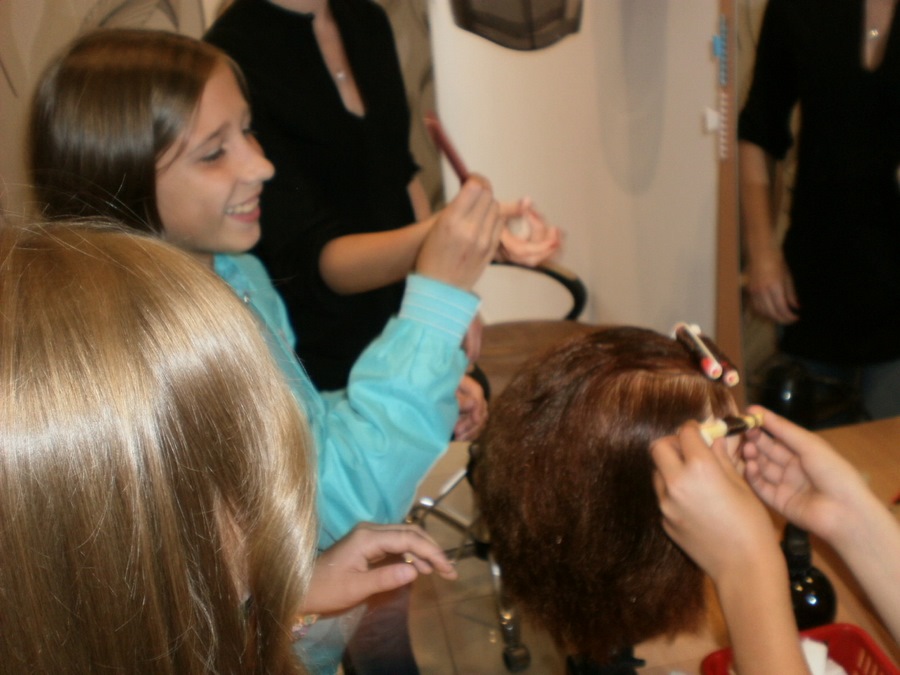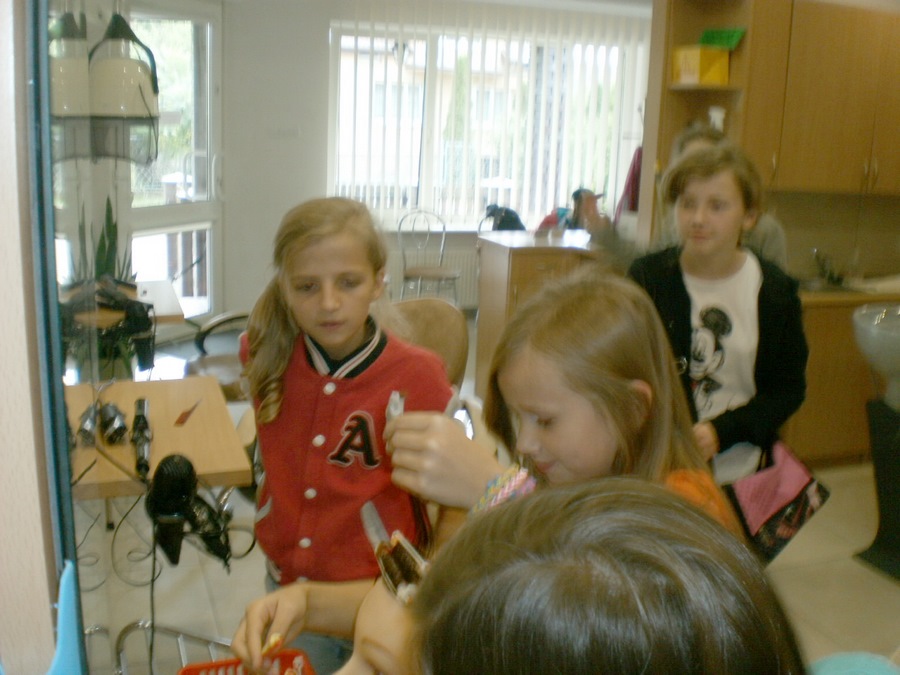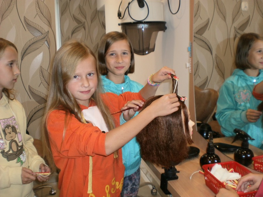 Dzieci bardzo zainteresowały zajęcia praktyczne. Próbowały swoich sił w nawijaniu włosów na wałki, co okazało się wcale niełatwą czynnością. Niektórzy uczniowie wyszli z zakładu odmienieni, gdyż pozwolili sobie ułożyć nowe fryzury.