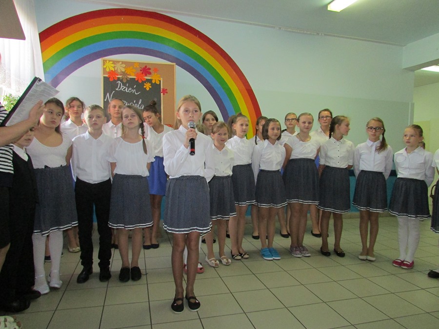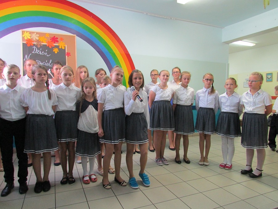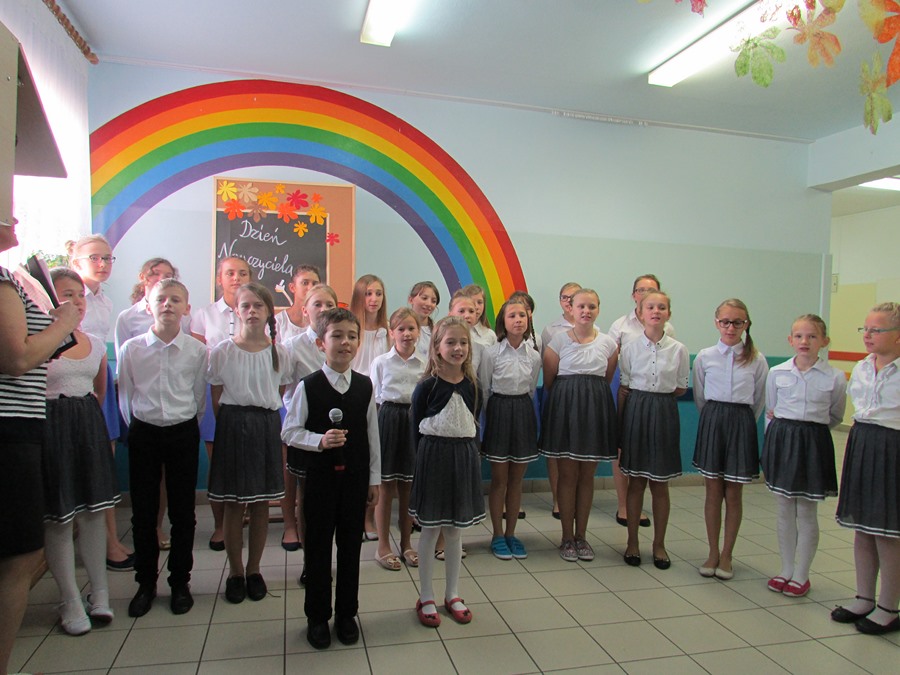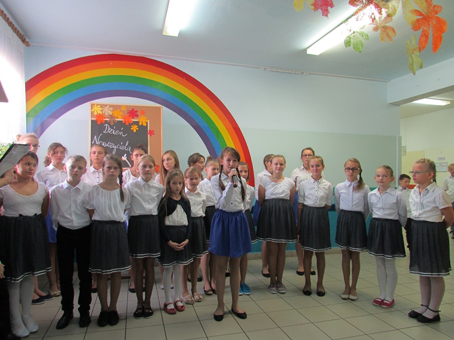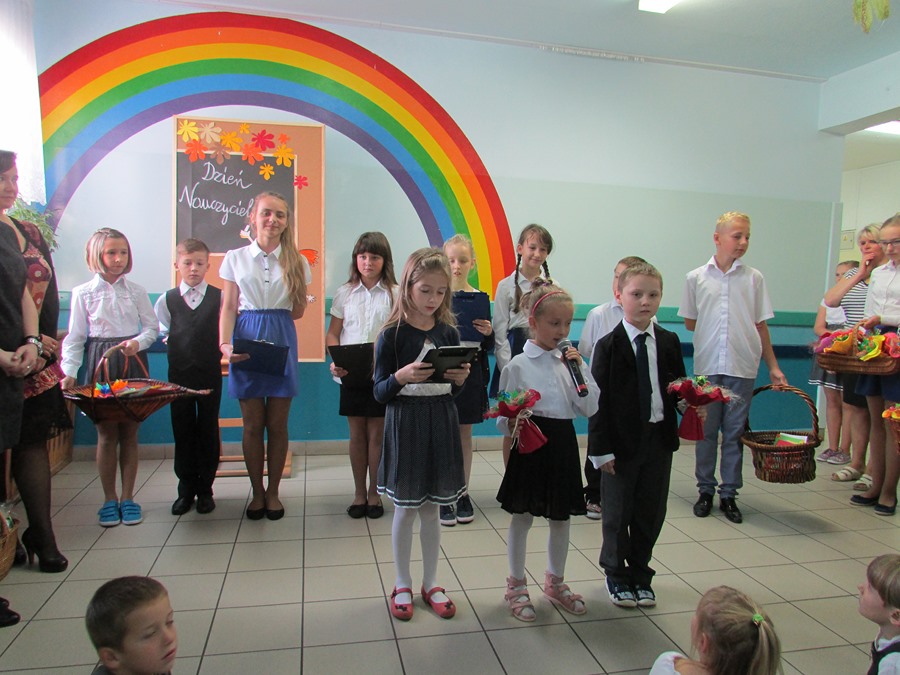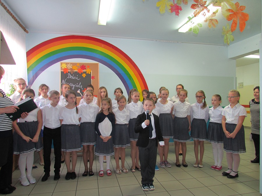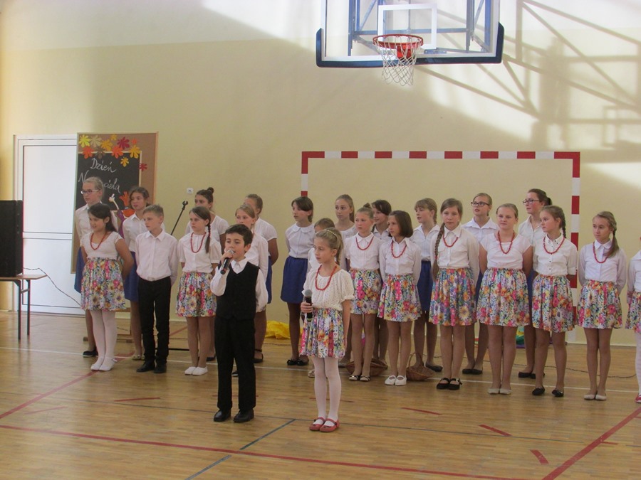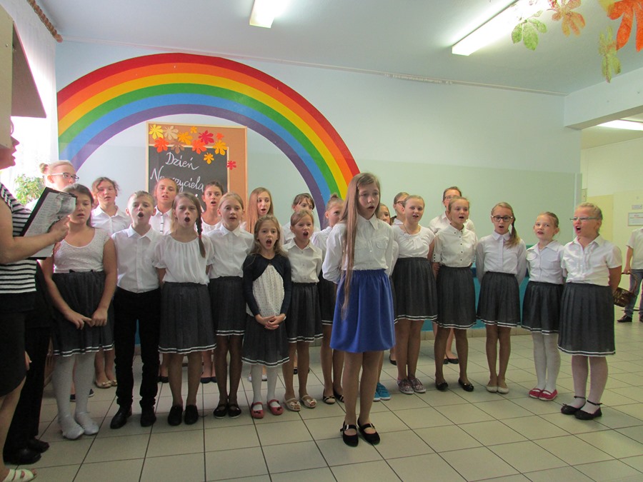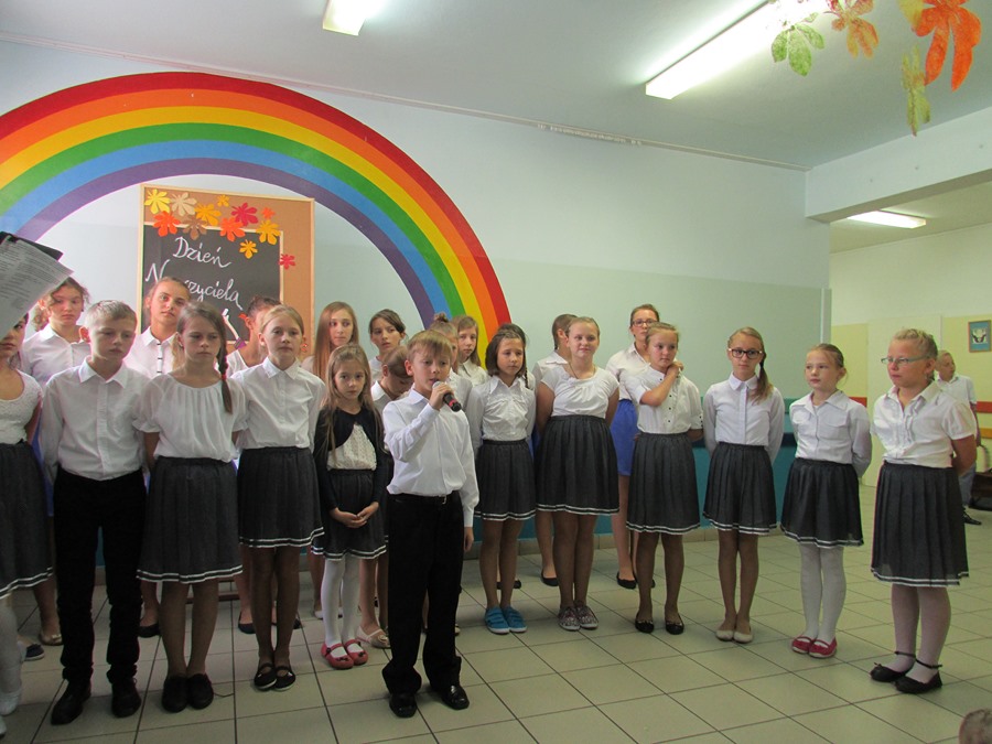 9 października społeczność naszej szkoły obchodziła Dzień Edukacji Narodowej. Do tego święta uczniowie przygotowali się bardzo solidnie. Członkowie koła wokalnego pod kierunkiem P. Julity Gąsiewskiej zaprezentowali przepiękny program artystyczny pt. „Barwy jesieni”. Dzięki piosenkom i wierszom wykonywanym przez uczniów zrobiło się ciepło, kolorowo i bardzo nastrojowo. Przedstawiciele SU złożyli serdeczne życzenia nauczycielom i pracownikom szkoły, a także wręczyli im bardzo miłe – własnoręcznie wykonane – upominki. Życzeń nie zabrakło także od Rady Rodziców. To było także ich święto, ponieważ to właśnie rodzice są pierwszymi i najważniejszymi nauczycielami dla swoich dzieci.