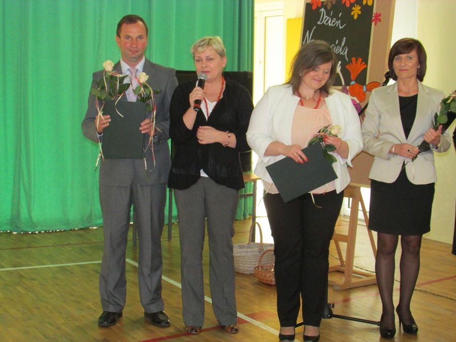 W godzinach popołudniowych gościliśmy nauczycieli ze wszystkich szkół w Gminie Długosiodło. Podczas spotkania, które uświetnił występ naszych uczniów, Pan Wójt nagrodził szczególnie wyróżniających się w gminie dyrektorów i nauczycieli. Jest nam bardzo miło, że z naszego grona pedagogicznego zostało nagrodzonych aż troje nauczycieli: p. dyrektor Urszula Kmoch, p. Marta Piotrak i p. Wojciech Trentowski.