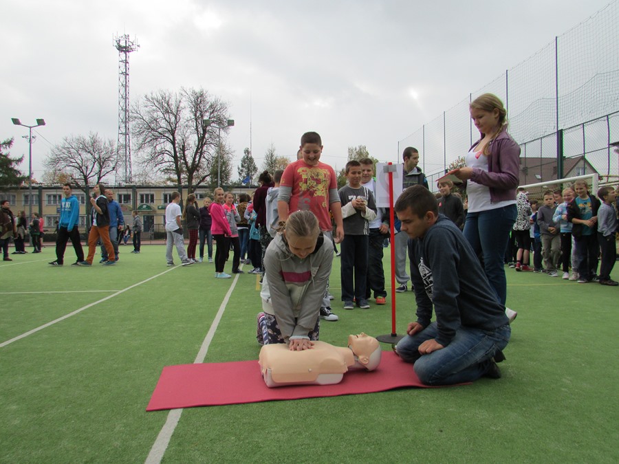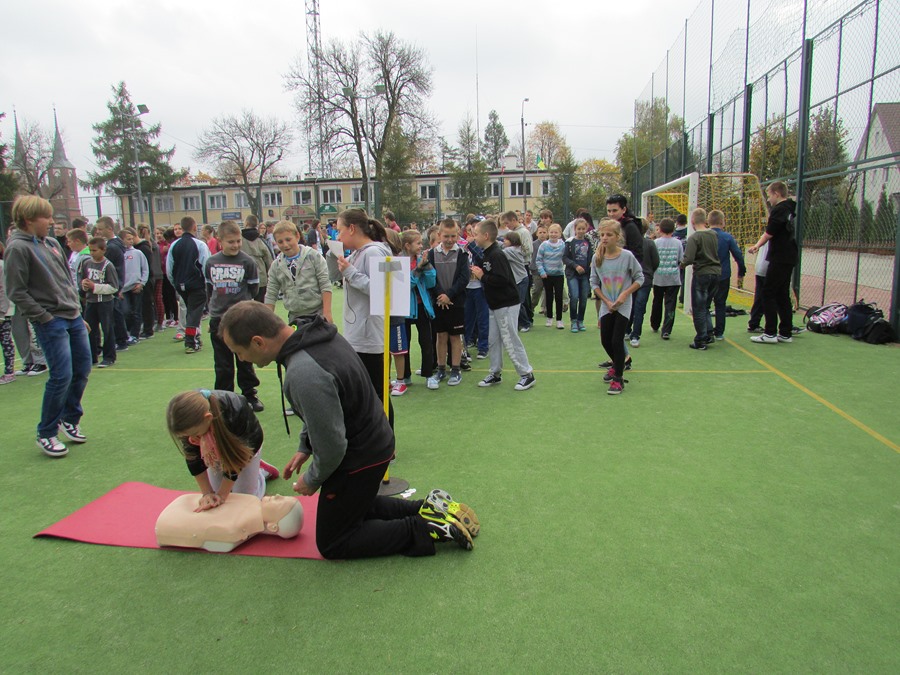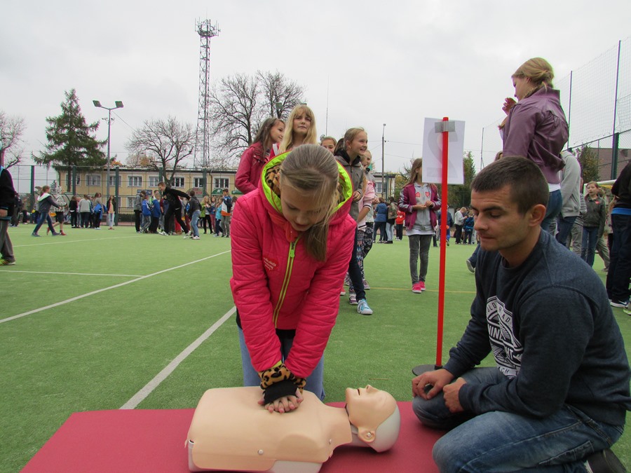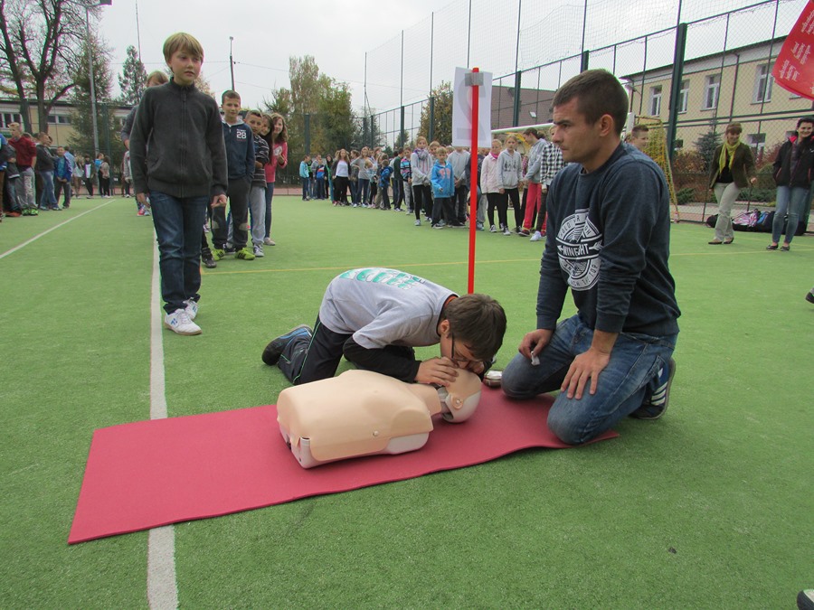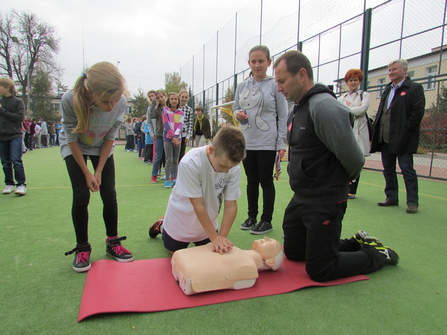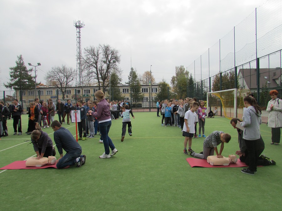 16 października 2014 r. nasza szkoła wraz z gimnazjum wzięła udział w biciu rekordu w jednoczesnym prowadzeniu resuscytacji krążeniowo – oddechowej przez jak największą liczbę osób. Organizatorem akcji ogłoszonej przez WOŚP było na naszym terenie Gminne Centrum Informacji, Kultury, Sportu i Rekreacji (z koordynatorem - ratowniekiem medycznym - p. Robertem Maciochem). Podczas “Europejskiego Dnia Przywracania Czynności Serca” pokazaliśmy, że uczniowie już w szkole podstawowej uczą się podstawowych czynności ratujących życie (czyli uciśnięć i wdechów na fantomach przekazanych przez WOŚP). Akcja - prowadzona na 4 stanowiskach - trwała bez przerwy przez 30 min.