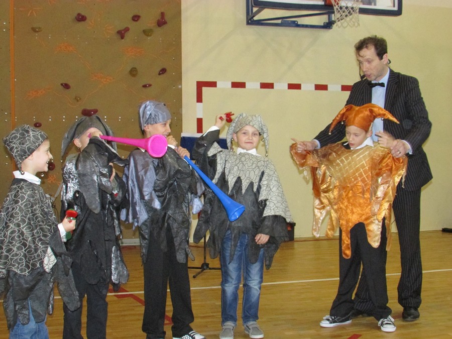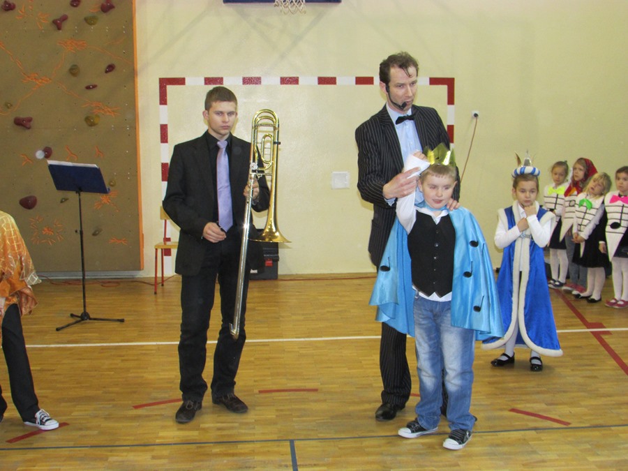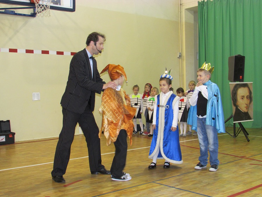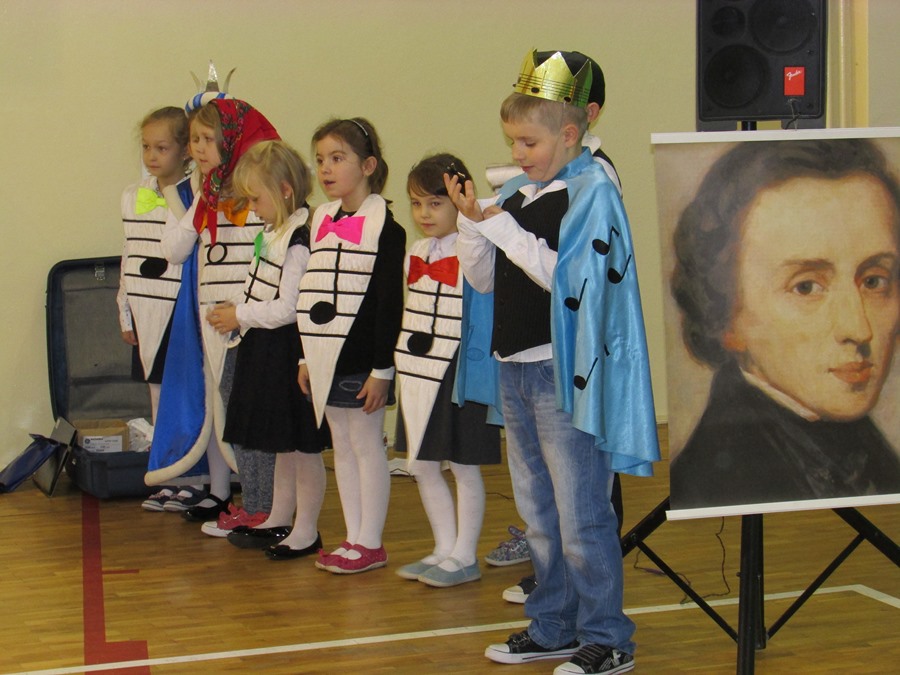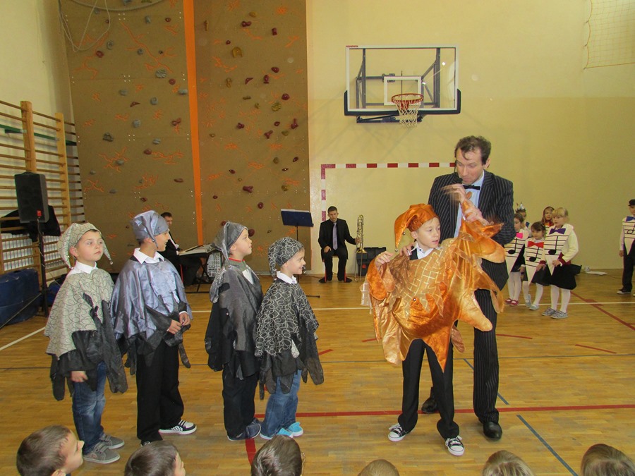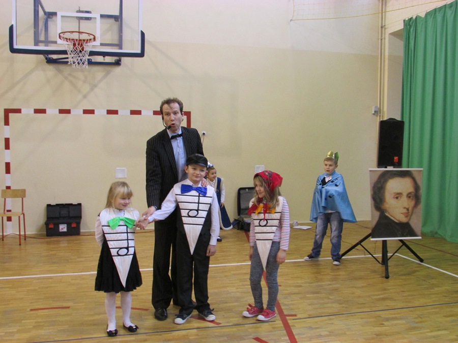 12 listopada uczniowie z klas 0 – III uczestniczyli w lekcji muzycznej pt. „Przygody Nutki Półnutki” prowadzonej przez artystów z Agencji „MAT” z Olsztyna. W czasie muzycznej baśni, uczestnicząc w niej jako aktorzy, poznali wartości nut najwybitniejszego polskiego kompozytora - Fryderyka Chopina oraz brzmienie i budowę puzonu – instrumentu z rodziny dętych blaszanych. W turnieju wiedzy o muzyce zdobytej w czasie lekcji zmagali się uczniowie klas pierwszych. Zwycięzcą został Janek Karamuz z klasy Ib. Gratulacje! Na kolejną lekcję muzyczną zapraszamy 17 grudnia.