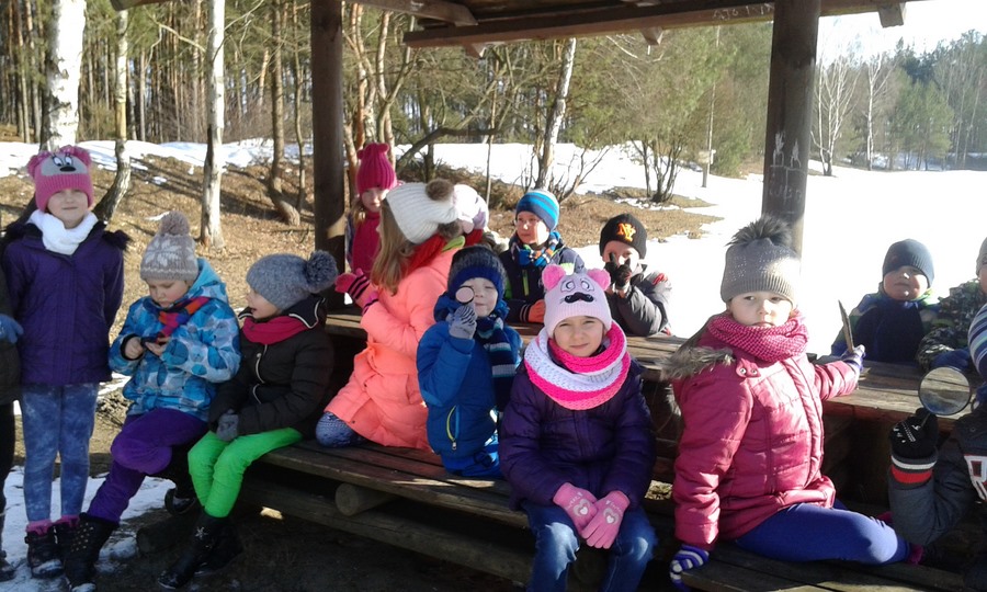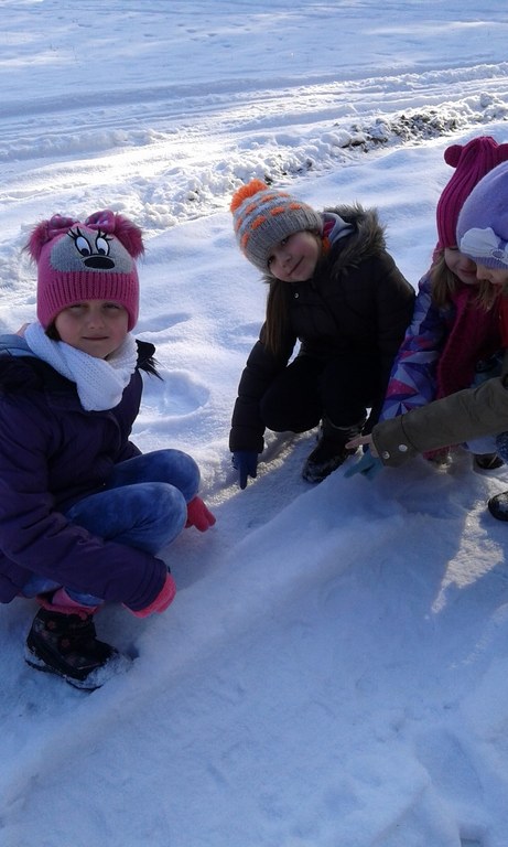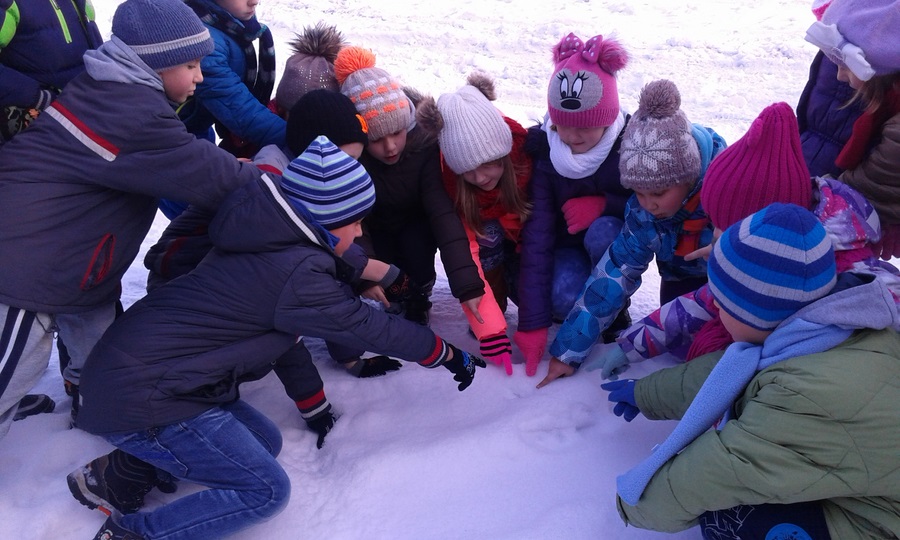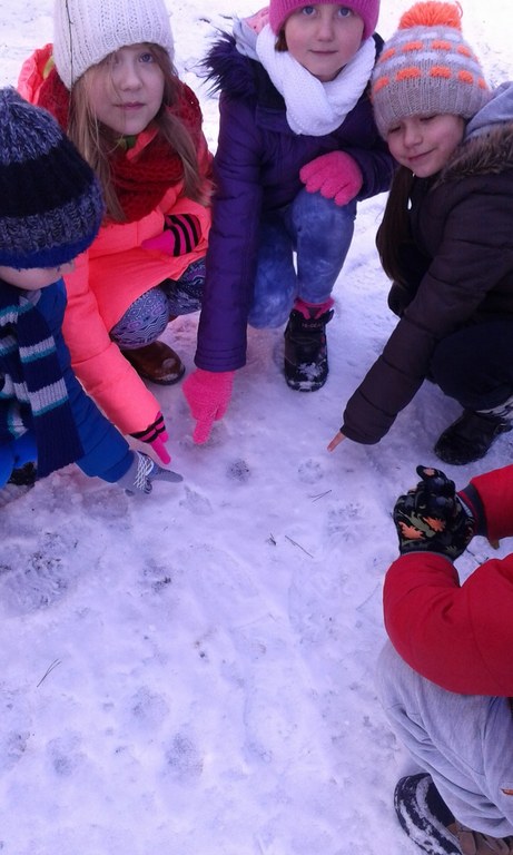 6 lutego 2015 r. byliśmy na wycieczce w lesie w poszukiwaniu śladów i tropów pozostawionych przez dzikie zwierzęta. W czasie wędrówki odnaleźliśmy tropy sarny, zająca i lisa. Przy okazji przypomnieliśmy sobie gatunki drzew i krzewów. Wszystko odbyło się w pięknej zimowej atmosferze.