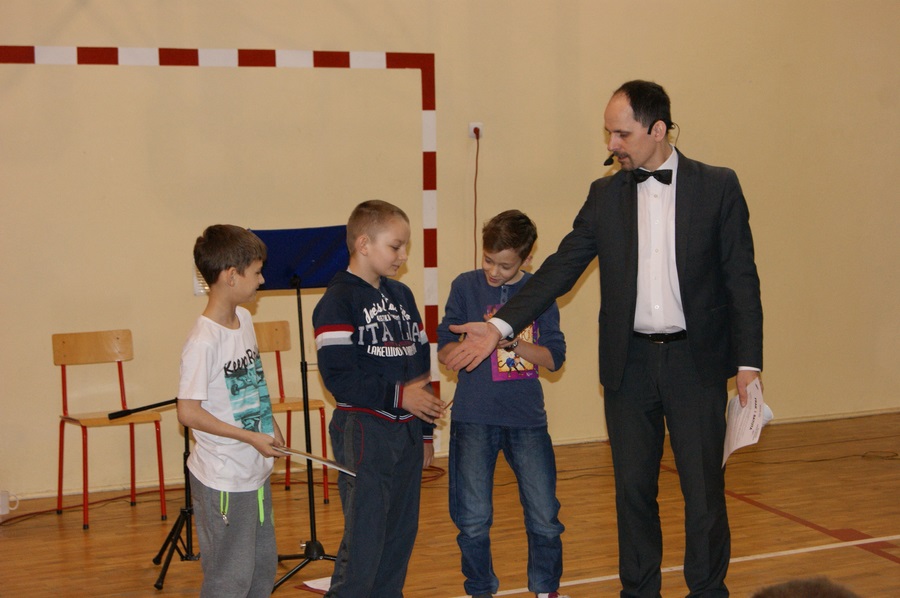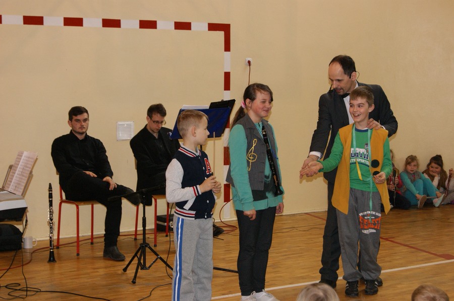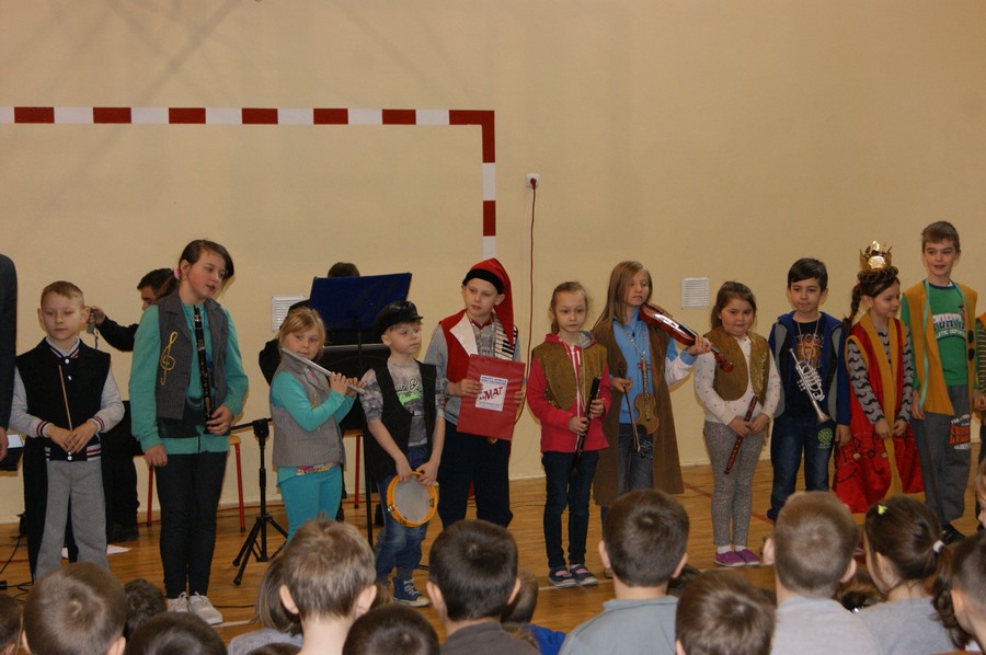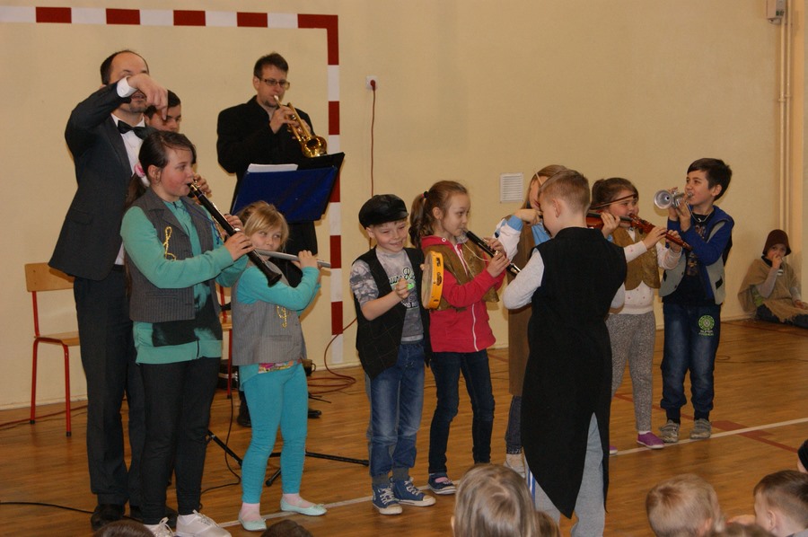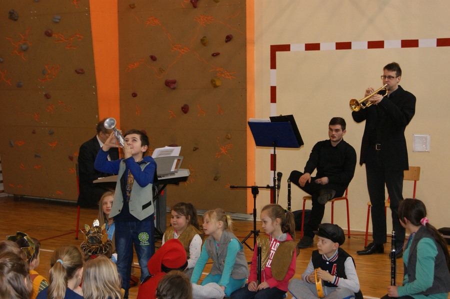 W środę, 15 kwietnia, odbyła się lekcja muzyczna pt. „Frak i batuta”. Uczniowie w zabawowy sposób poznali dwa instrumenty: klarnet i trąbkę oraz pracę dyrygenta. Odbył się ostatni już w tym roku szkolnym konkurs wokalny, który wygrała Lena Nowak z klasy Ic oraz ostatni konkurs wiedzy, w którym swoich rywali pokonał Dawid Pędzich z klasy IIIb. Zwycięzcy konkursów wiedzy spotkają się w półfinale konkursu, który odbędzie się na majowej lekcji muzycznej (13 maja).