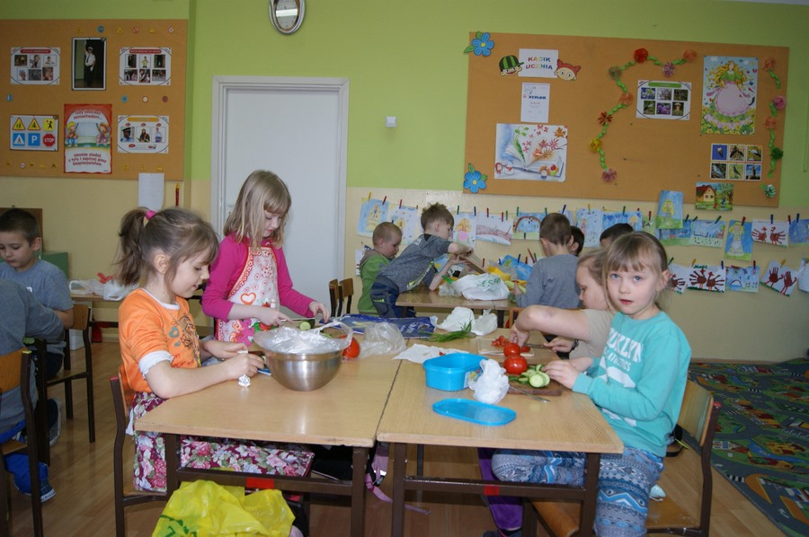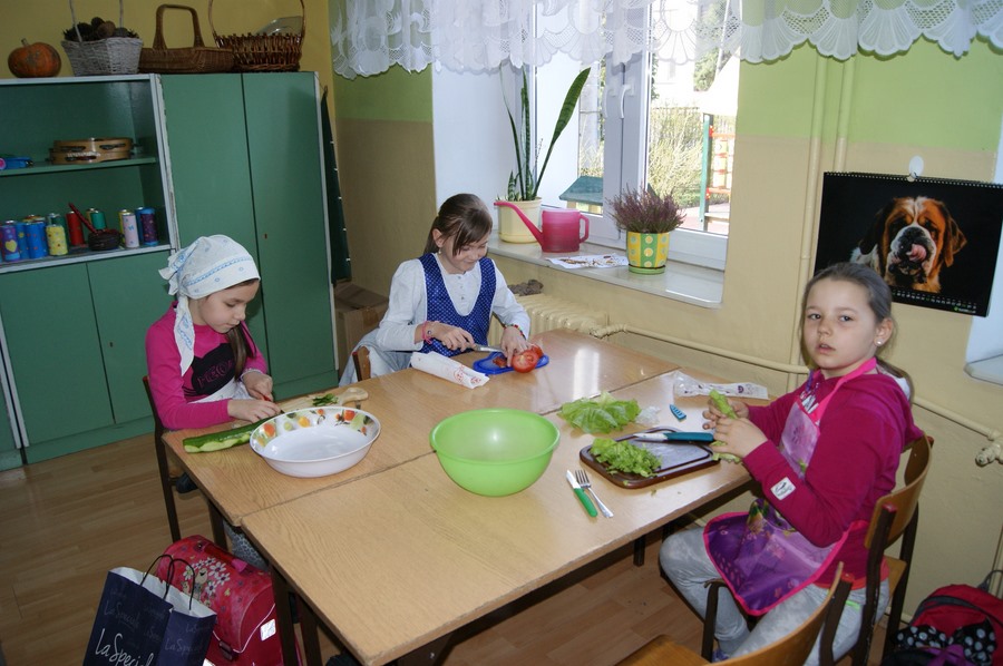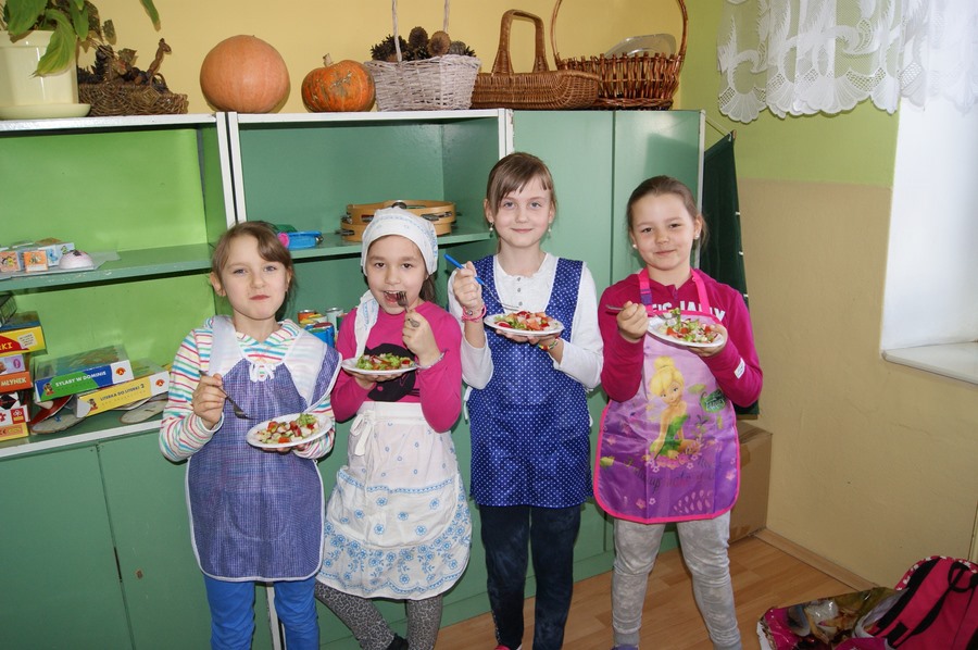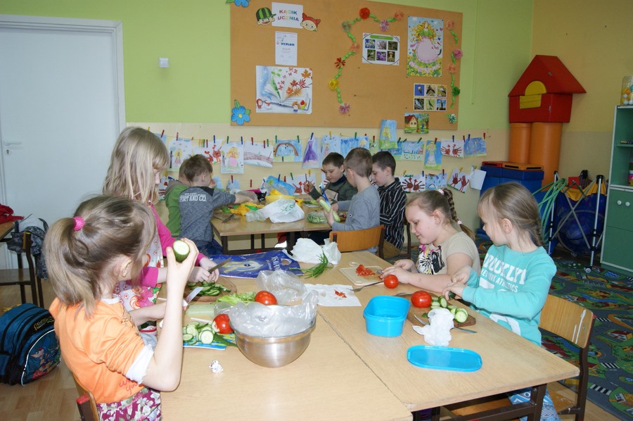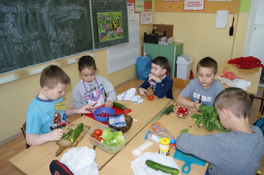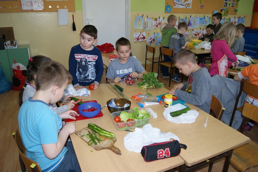 W ramach rozpowszechniania zasad zdrowego odżywiania uczniowie klasy Ib wykonali WIOSENNE SAŁATKI, które po ukończeniu wspólnie spożywali. Wszyscy jednogłośnie stwierdzili, że ukończone przekąski były PRZEPYSZNE!!! Grupowe przyrządzanie posiłku to także dobry moment na naukę poprawnych zasad gotowania oraz kulturalnego zachowywania się przy stole.