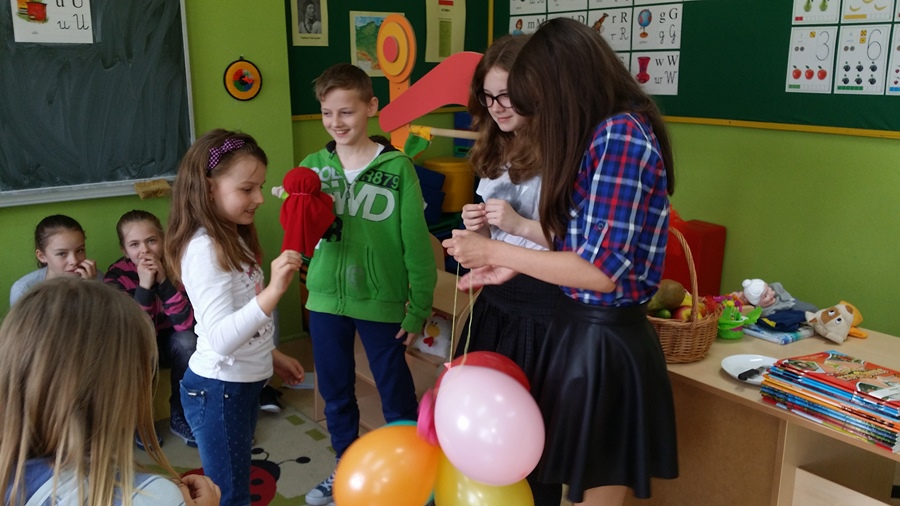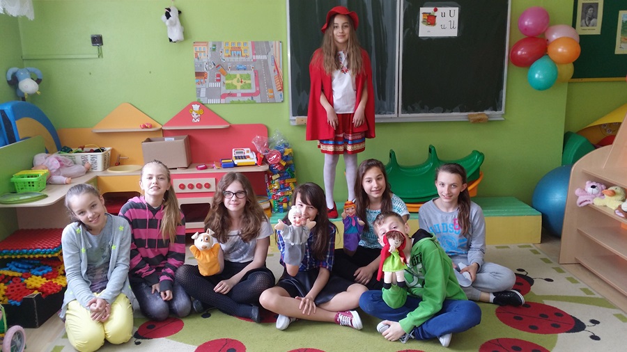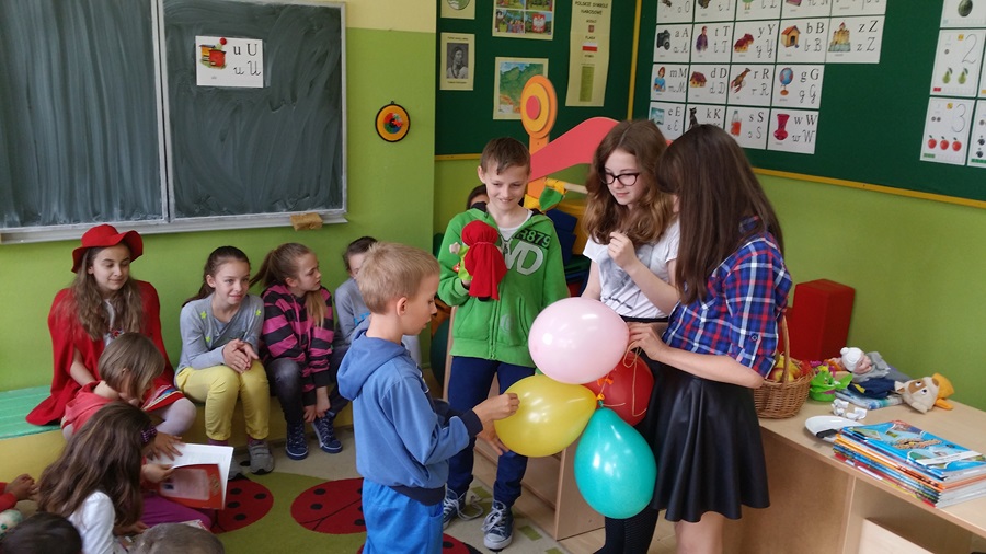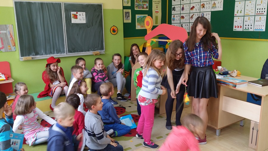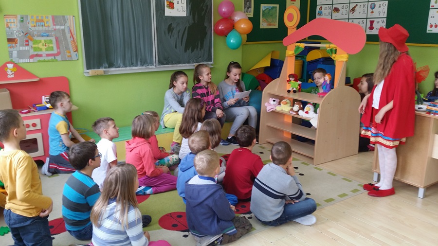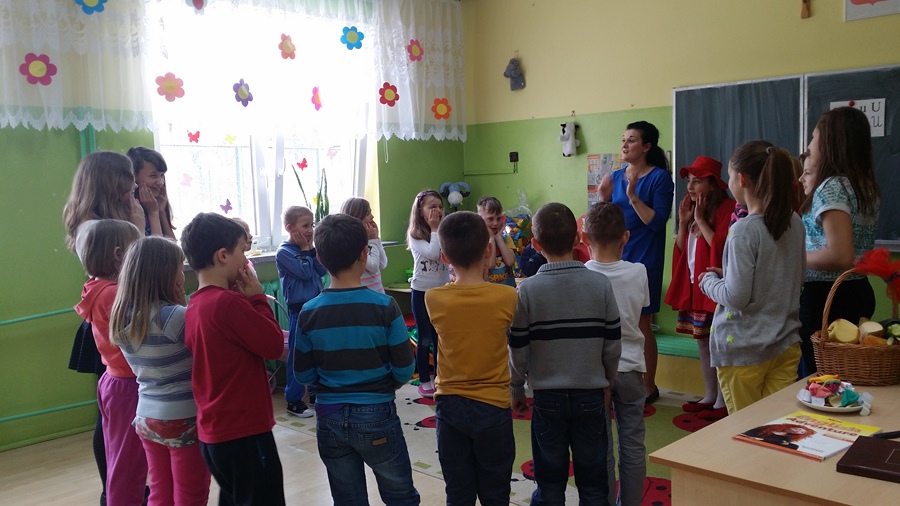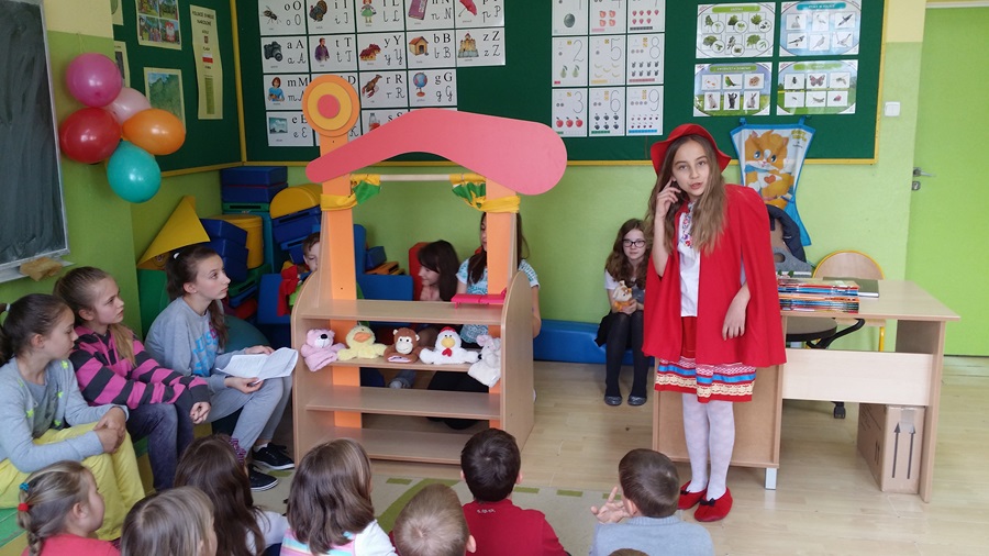 14 maja 2015 roku szkolne koło teatralno - językowe gościło z programem artystycznym w klasie „zero”. Uczniowie wystawili w wersji angielskiej przedstawienie pacynkowe pt. „Czerwony Kapturek”.