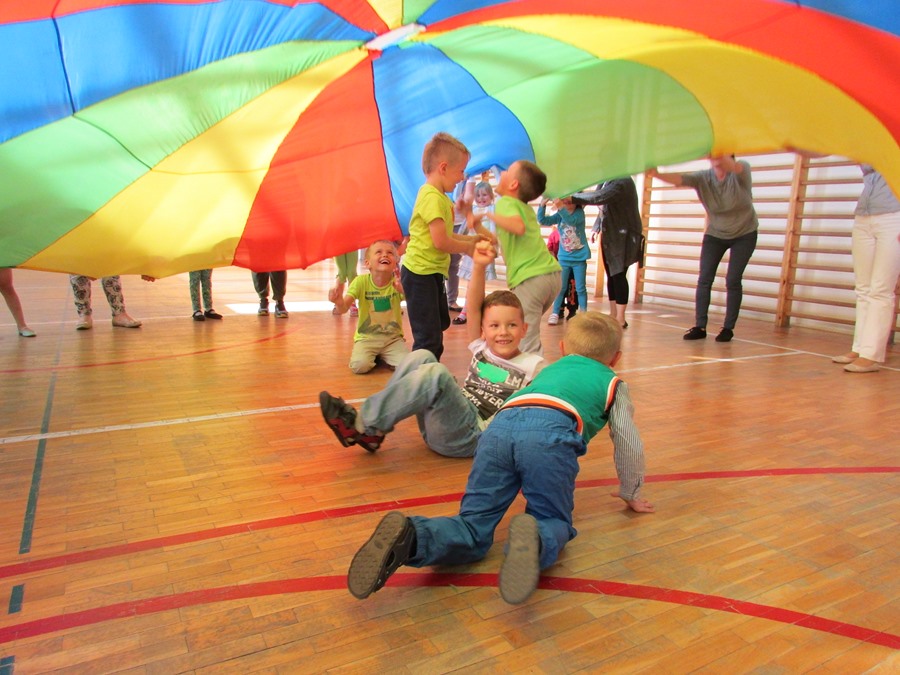 W trakcie zajęć przedszkolaki wykonały wraz ze swoimi rodzicami wizytówki z kolorowego papieru, bawiły się przy piosence „Podaj mi kapelusz”,zakładając na głowę magiczny, kolorowy kapelusz, poznawały pomieszczenia szkoły, przejeżdżając od stacji do stacji „pociągiem”, bawiły się chustą animacyjną w sali gimnastycznej, a na zakończenie z ozdobionymi przez siebie balonikami odwiedziły szkolny plac zabaw.