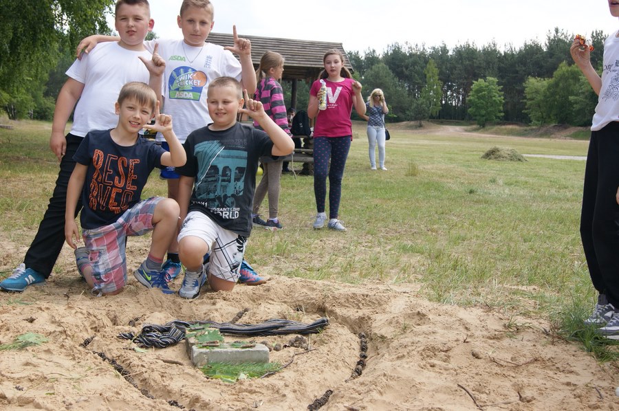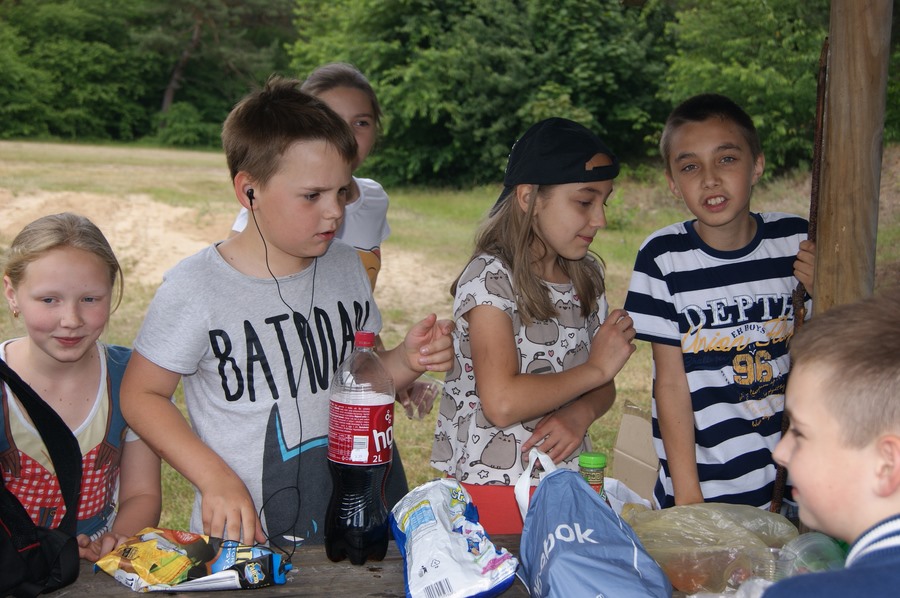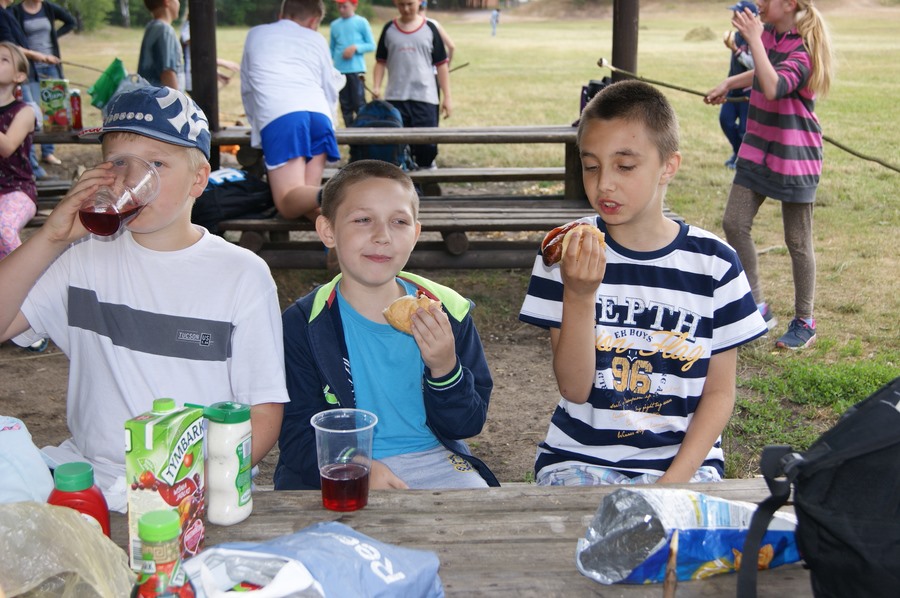 22 czerwca wybraliśmy się na ognisko klasowe. Korzystając z pięknej pogody, zorganizowaliśmy wspaniałą zabawę: rozgrywki i zabawy sportowe oraz budowanie zamków z piasku. Budowniczowie wykazali się dużą pomysłowością, trudno było wyłonić zwycięzców. Chwile wytchnienia spędziliśmy przy rozpalonym przez Mamy ognisku. Tu posililiśmy się upieczonymi przez siebie kiełbaskami. W drodze powrotnej do szkoły zostaliśmy zaproszeni do Mateusza, ucznia naszej klasy, który pokazał nam swój domowy zwierzyniec. Był to ciekawy dzień, wspaniale się bawiliśmy.