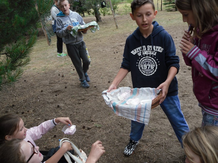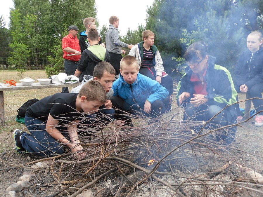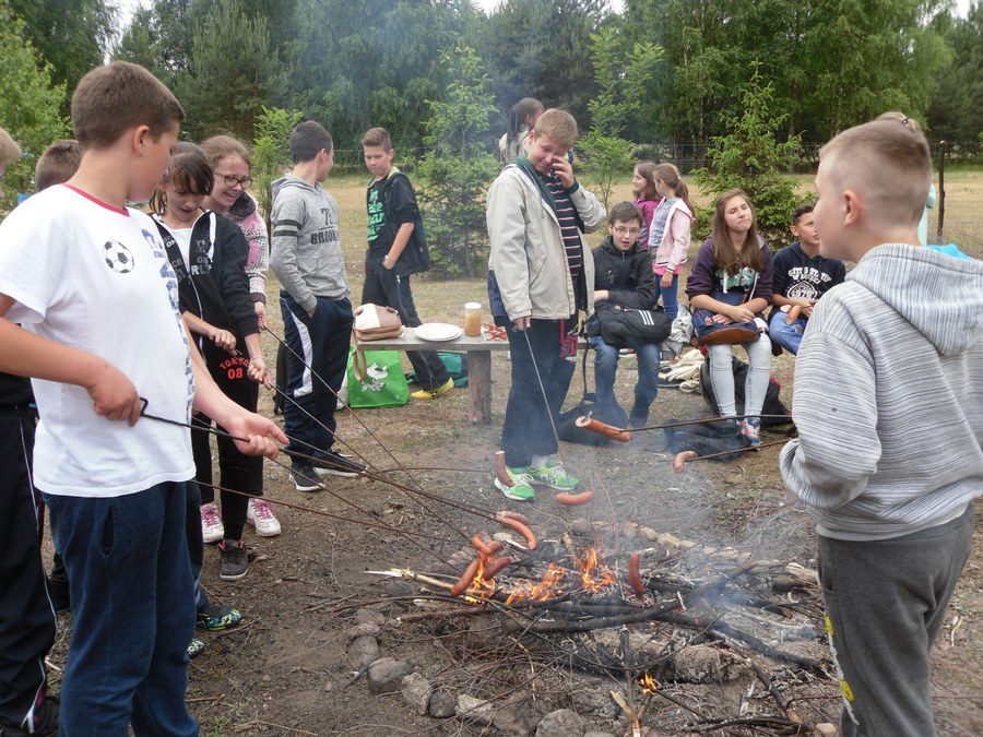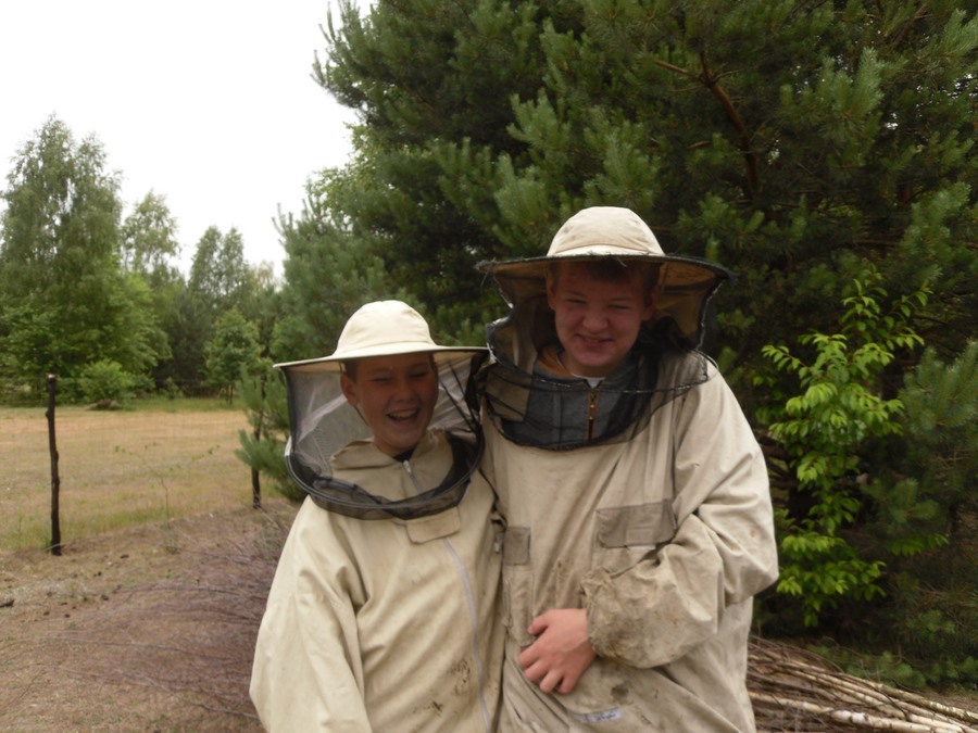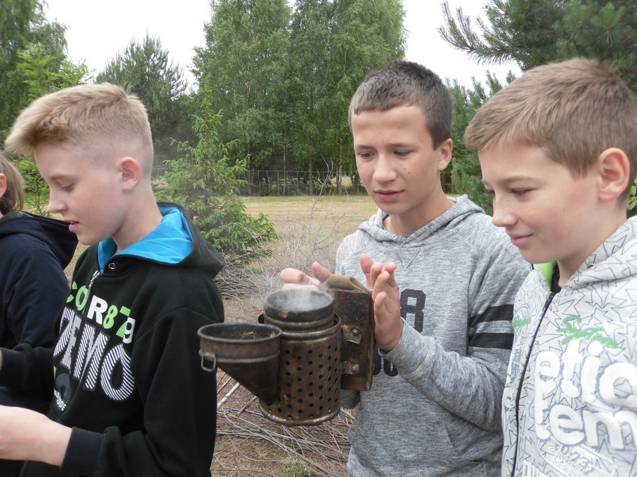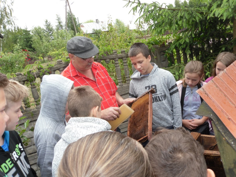 Nigdy nie przypuszczaliśmy, że pszczoły są tak pożyteczne i mądre. Od Pana Sarnackiego dowiedzieliśmy się wielu ciekawych rzeczy na temat ich życia, zwyczajów oraz pożytków płynących z ich pracy. Niektórzy mieli nawet możliwość podejrzeć pszczoły z bliska – w ulu. Wszyscy skosztowaliśmy pysznego miodu z pasieki Państwa Sarnackich. Po lekcji na temat pszczół wesoło spędziliśmy czas przy ognisku.