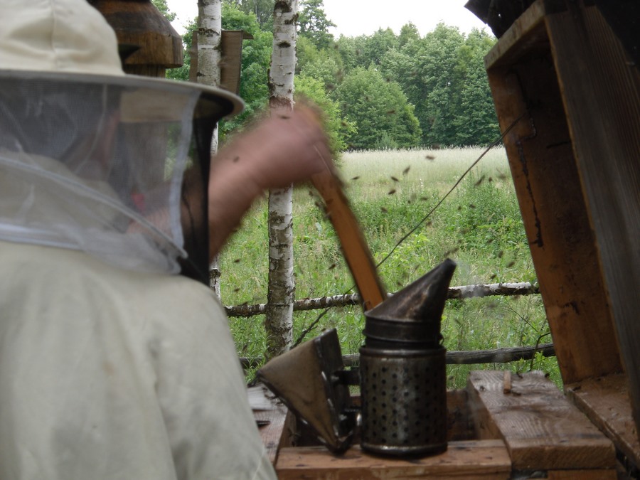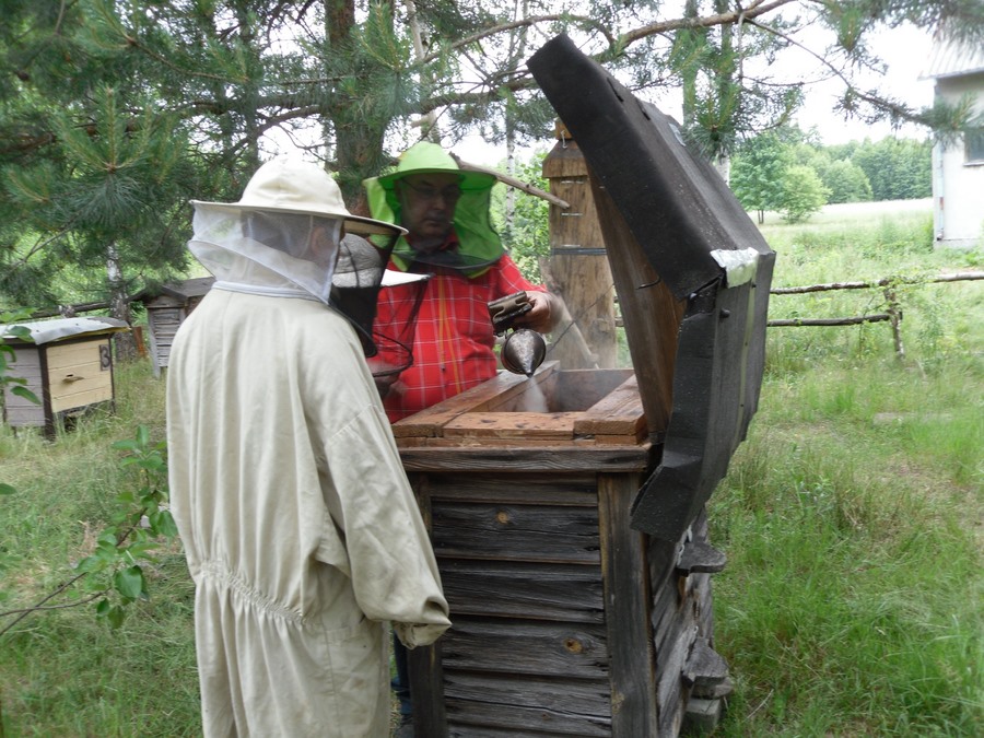 Naszym celem było Białebłoto, a konkretnie posiadłość należąca do rodziców naszej koleżanki – Ewy. Na miejscu powitał nas Pan Robert Sarnacki – tata Ewy, który w swoim obejściu hoduje pszczoły.