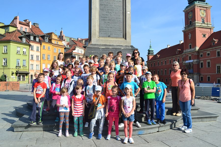 16 września odbyła się pierwsza w tym roku szkolnym (miejmy nadzieję, że nie ostania) wycieczka klas II. Celem podróży była stolica Polski – Warszawa. Naszą przygodę zaczęliśmy od zwiedzania Starego Miasta. Pani przewodnik swoimi opowieściami przeniosła nas w czasie. Poznaliśmy historię Kolumny Zygmunta III Wazy i związanej z nią cyfry 4, śladami królów wędrowaliśmy po dziedzińcu Zamku Królewskiego. Od wyjazdu nie obce nam są także legendy o Warsie i Sawie oraz Bazyliszku. Spacerując po warszawskiej Starówce, nie mogliśmy pominąć Pomnika Małego Powstańca.