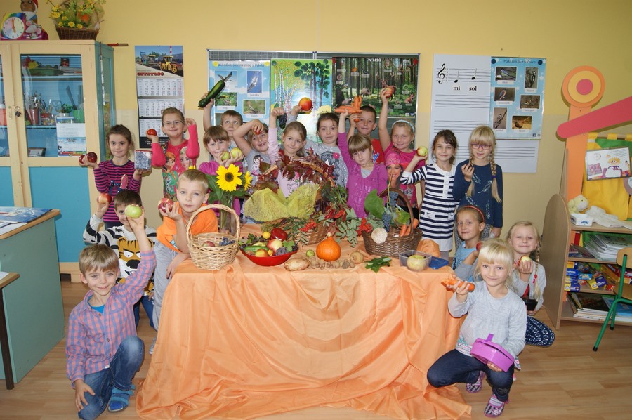 Uczniowie klasy IIc uczestniczyli w cyklu lekcji "Zdrowe odżywianie - zdrowe dzieci". Byliśmy w sklepie warzywniczym, gdzie rozpoznawaliśmy warzywa i owoce oraz poznawaliśmy te mniej znane, jak bakłażan, szpinak, aronia, żurawina, rzepa, rzodkiew. W klasie zrobiliśmy wystawę darów jesieni, ale... na krótko, bo zakończyliśmy dzień wspólną biesiadą pod hasłem "Jedz warzywa na surowo, bo to smacznie oraz zdrowo!"