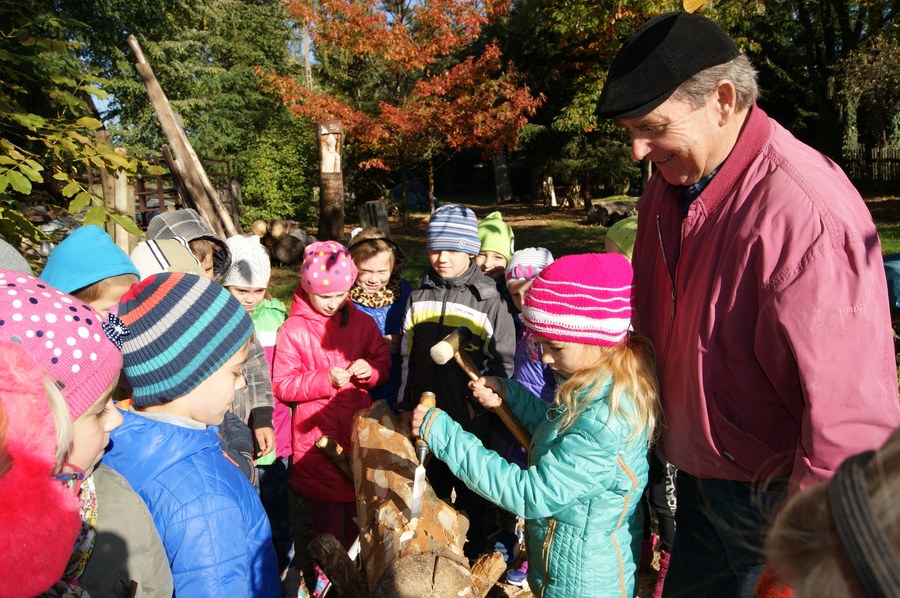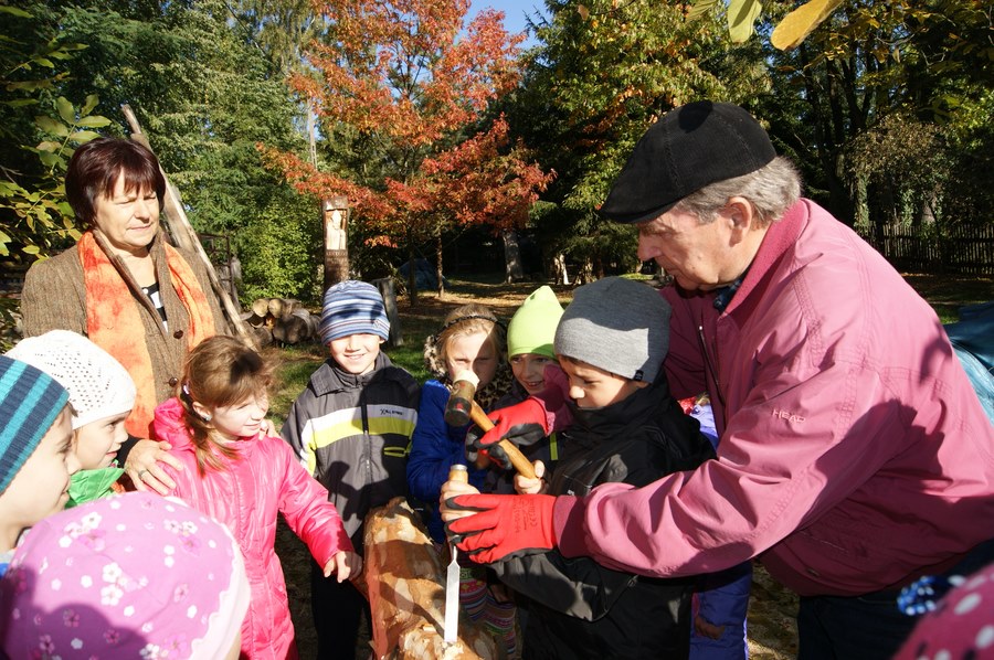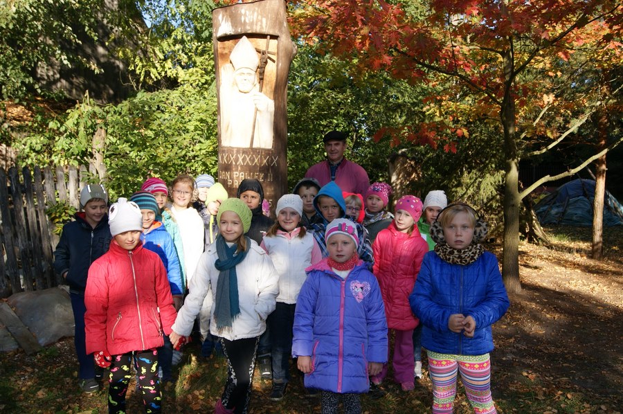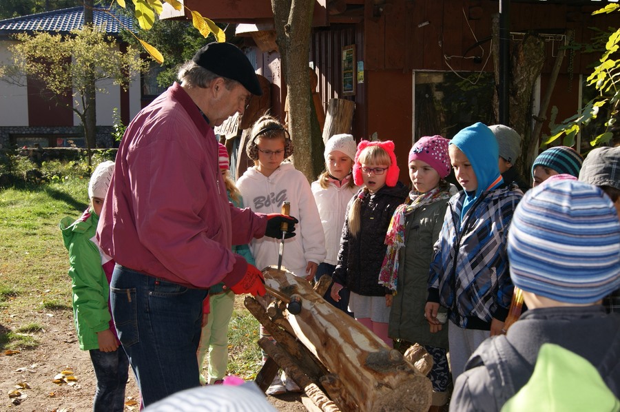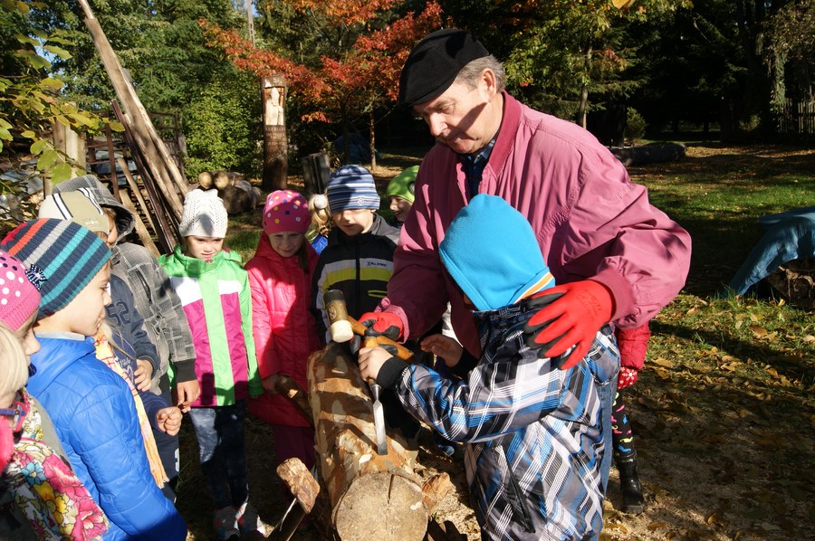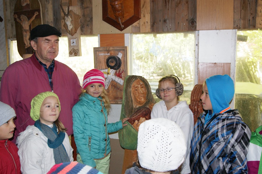 9 października wybraliśmy się do pracowni rzeźbiarskiej p. Kazimierza Sikorskiego. Z zainteresowaniem oglądaliśmy rzeźby od tych najmniejszych po największe, które mają nawet 2,5 metra. Duże rzeźby plenerowe to pasja p. Sikorskiego, a rzeźbienie to trudna sztuka, o czym przekonali się ci, którzy trzymali młotek i dłuto w dłoniach.