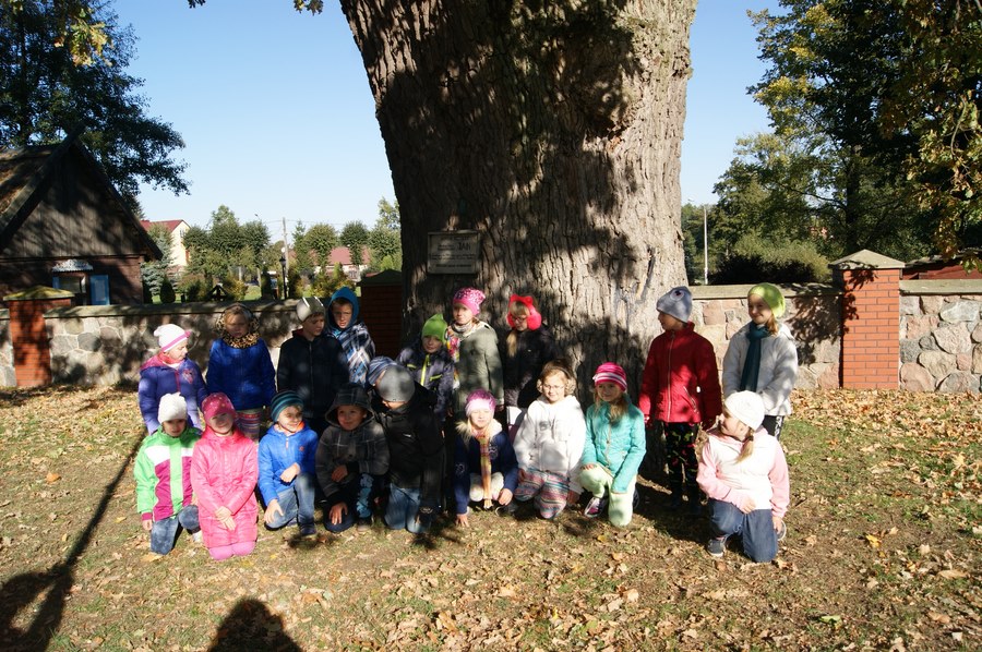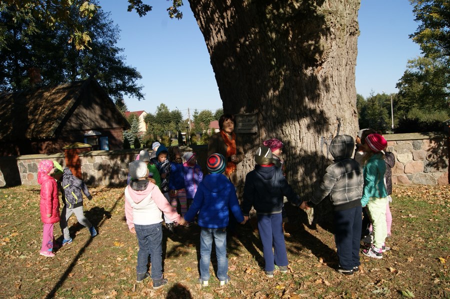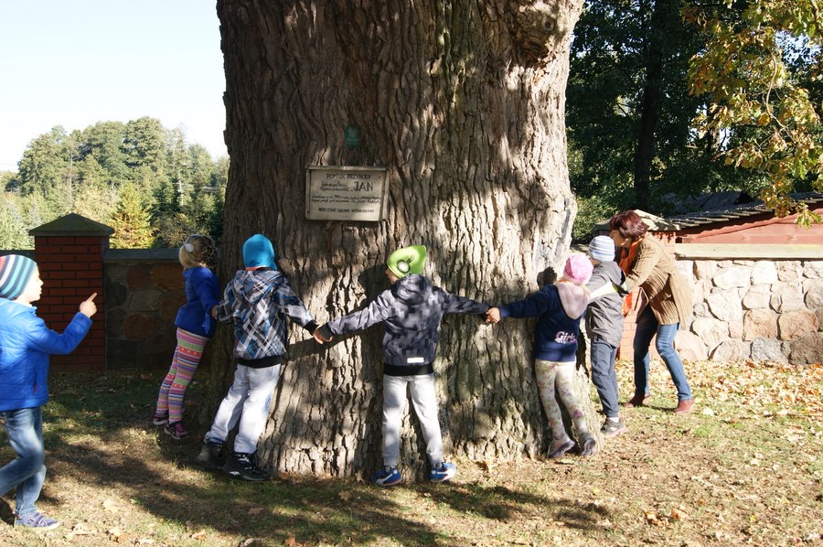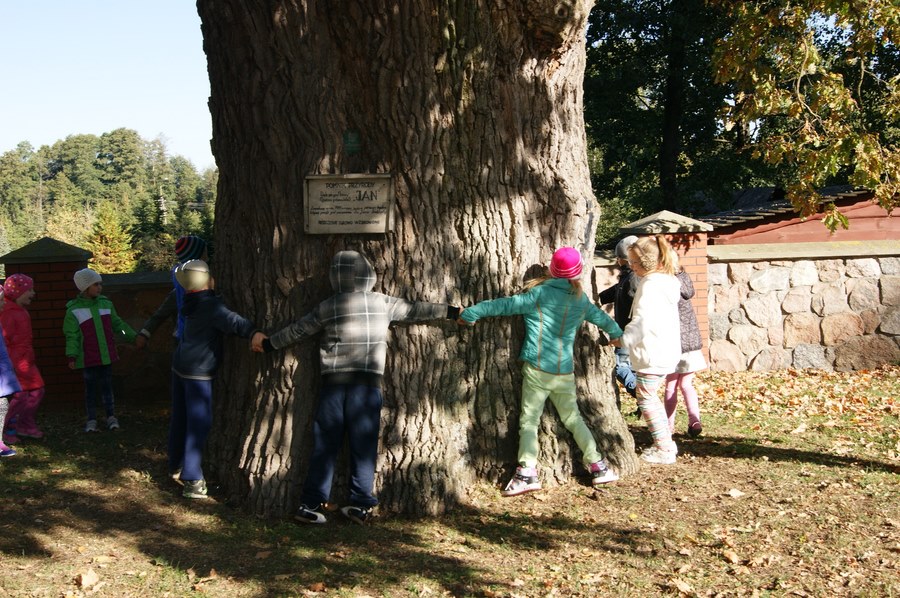 10 października świętujemy Dzień Drzewa. Z tej okazji wybraliśmy się też do naszego pomnika przyrody – dębu „Jan”, który ma już ponad 500 lat. Szacowaliśmy i sprawdzaliśmy, ile trzeba osób z naszej klasy, żeby go objąć. Jak myślicie, ile? Zachęcam do sprawdzenia!