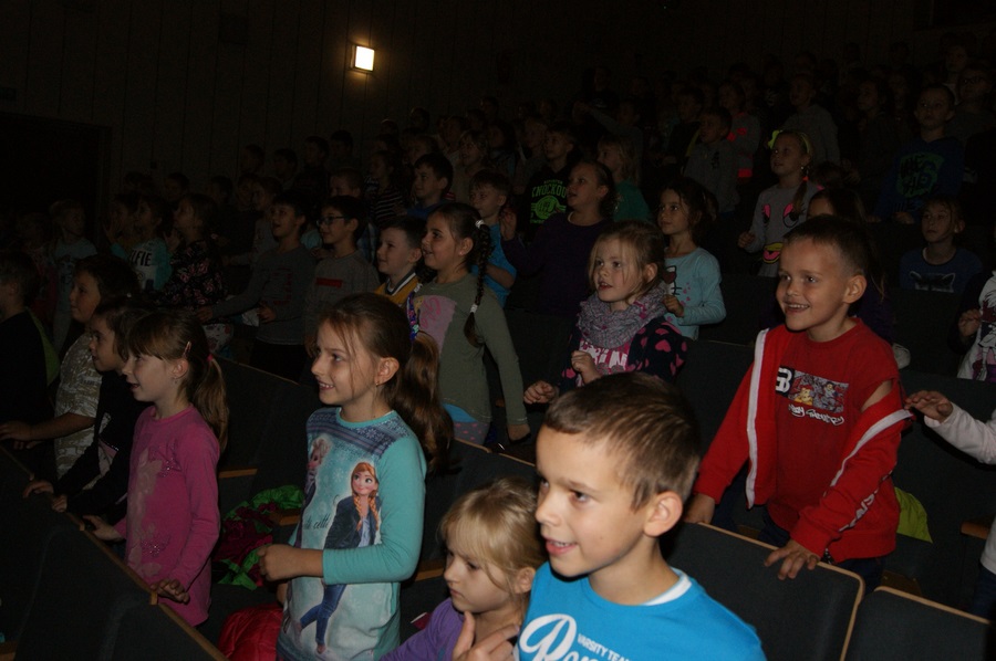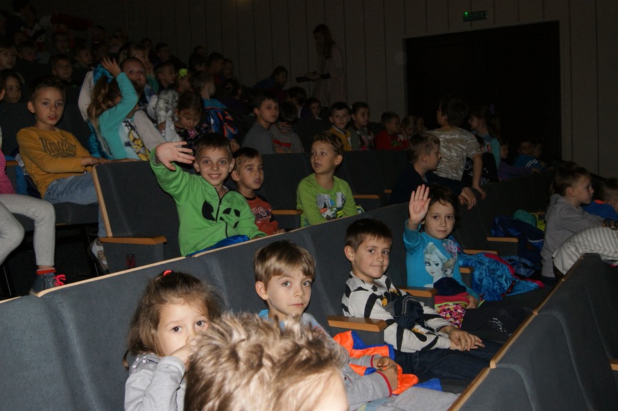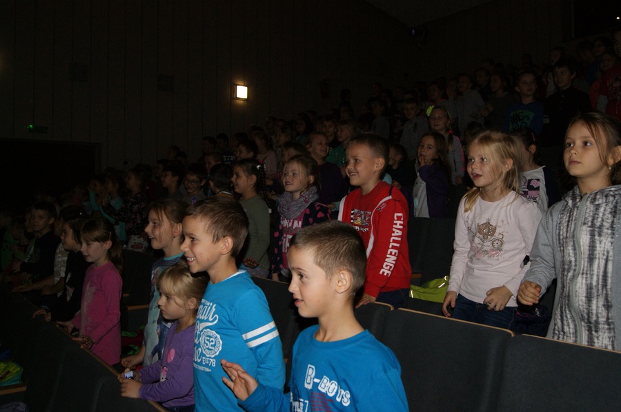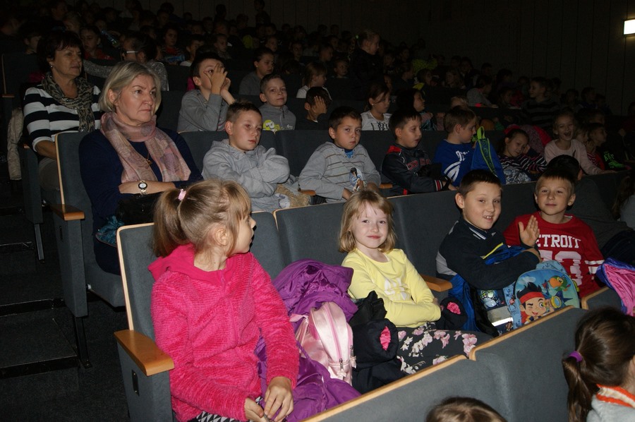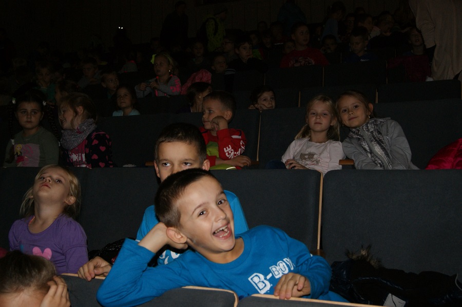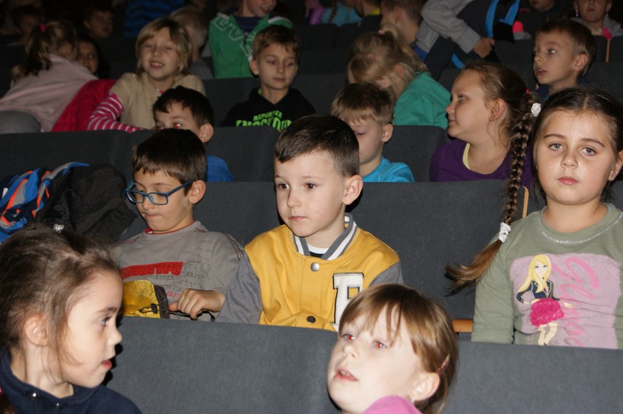 22 października 2015 r. uczniowie klas I- III wyjechali do kina w Wyszkowie. Brali udział w multimedialnej lekcji "Sekrety filmu animowanego" prowadzonej przez zawodowego aktora. Dowiedzieli się m. in., czego uczą bohaterowie filmów, jak wymyślono postać Shreka, jakie niespodzianki kryją filmy. Po ciekawej lekcji dzieci obejrzały baśnie braci Grimm: "Jasia i Małgosię", "Żabiego Króla" oraz "Królewnę Śniezkę".