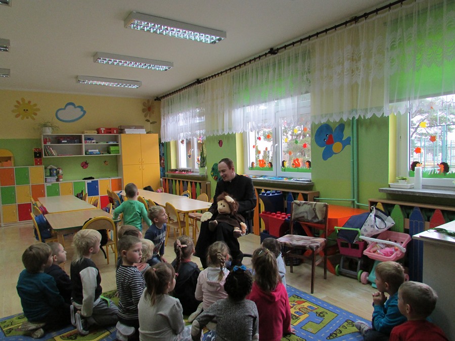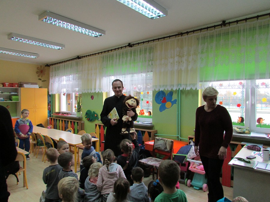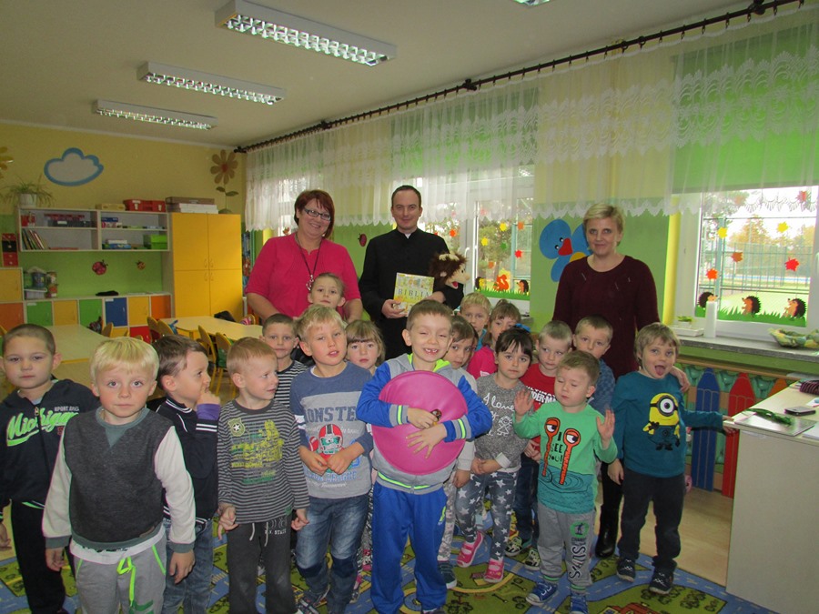 Jako pierwszy do oddziału przedszkolnego zaproszony został ksiądz Grzegorz Chełstowski. Na rozpoczęcie czytania przybyła pani dyrektor, która życzyła maluchom miłych wrażeń. Ksiądz czytał „Biblię dla dzieci”. Po lekturze dzieci miały za zadanie zilustrować przeczytany fragment. Trzy najlepsze prace zostaną nagrodzone drobnymi upominkami.