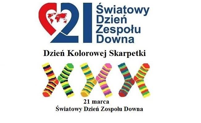 Zachęcamy Was do założenia skarpetek (najlepiej trzech, bo w zespole Downa są 3 chromosomy w 21 parze). Załóżcie różne skarpetki, kolorowe, w kropki, paski, zwierzątka lub inne wzorki! 👍