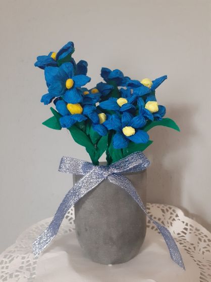 My, nauczyciele, w dowód pamięci o Was, Drodzy Uczniowie, przesyłamy Wam własnoręcznie wykonany bukiet niezapominajek.