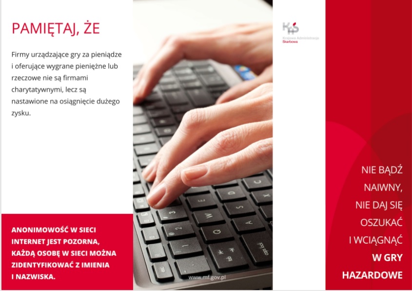 Dziś kilka słów o kampanii informacyjno- edukacyjnej „HAZARD? NIE, DZIĘKUJĘ” prowadzonej przez Krajową Administrację Skarbową.