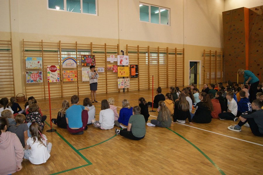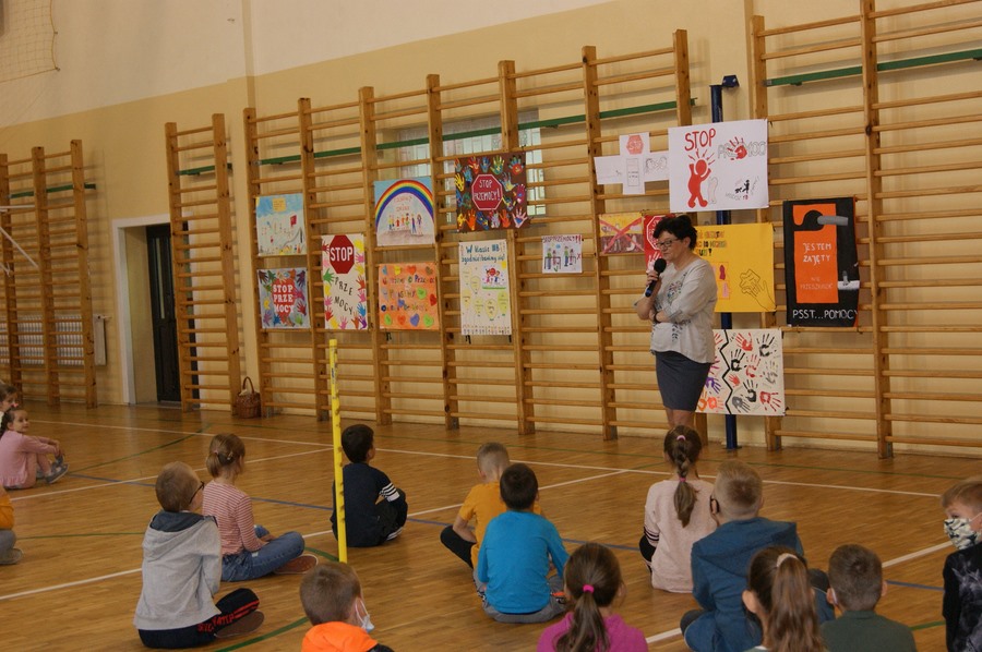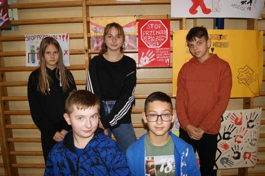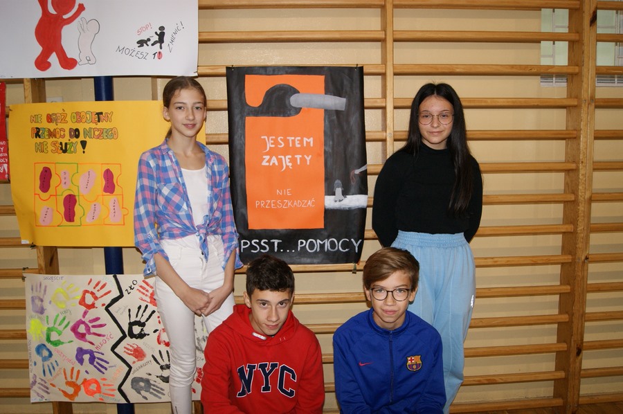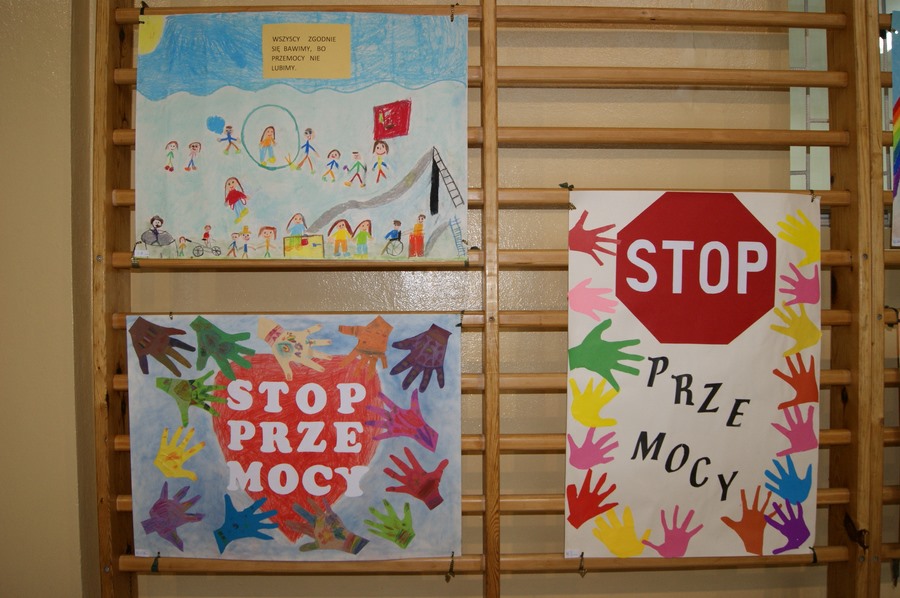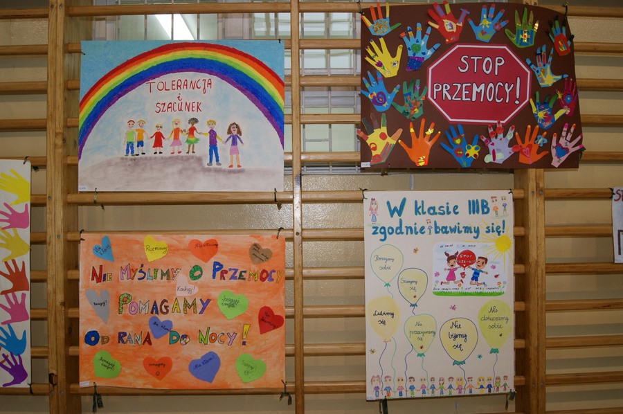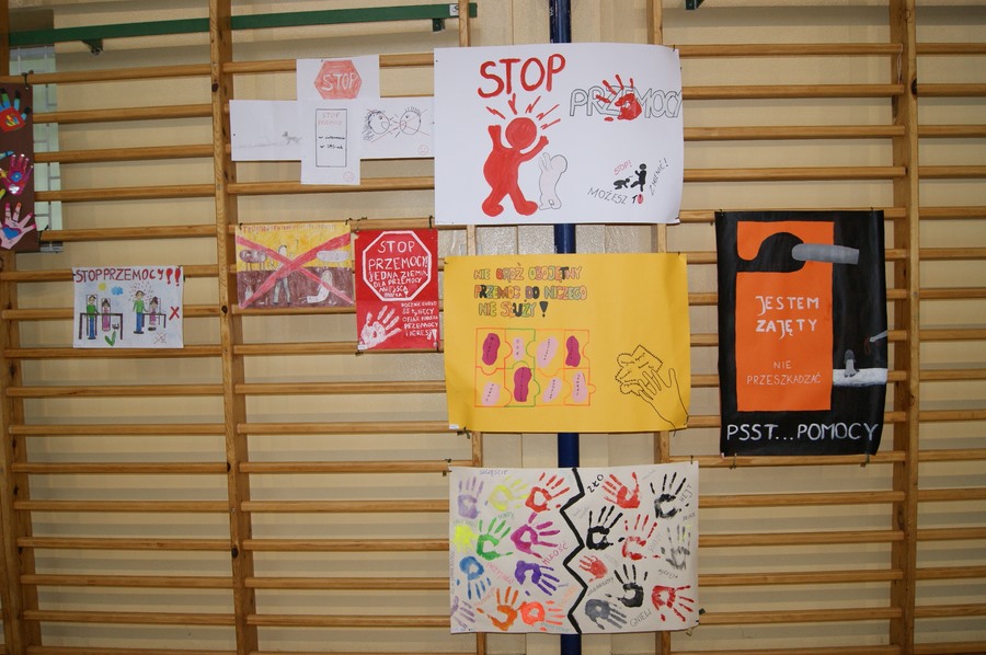 Wspólne wykonywanie plakatów, oprócz uświadomienia zła i zniszczenia, jakie niesie przemoc, miało integrować społeczność danej klasy. Cele te na pewno osiągnęliście.