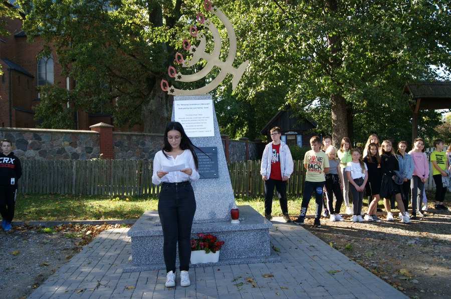 Swoją obecnością zaszczycili nas przedstawiciele lokalnych władz: Wójt Gminy Długosiodło – p. Stanisław Jastrzębski, zastępca wójta – p. Ewa Karczewska, Przewodnicząca Rady Gminy – p. Teresa Paradowska. Uczennica kl. VIII Matylda Biernat przypomniała krótko historię losów ludności żydowskiej z naszej gminy, natomiast Weronika Kuczyńska (również z kl. VIII) zaśpiewała fragment piosenki Mein jidisze Mame. Następnie o potrzebie zachowania pamięci o lokalnej historii mówili dyrektor naszej szkoły – p. Urszula Kmoch oraz Wójt Gminy Długosiodło – p. Stanisław Jastrzębski.