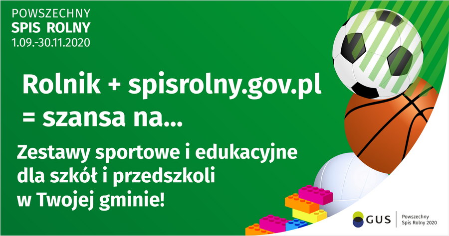Gmina, w której Państwo mieszkacie bierze udział w konkursie dla Gminnych Biur Spisowych w województwie mazowieckim. Nagrodą dla zwycięskiej gminy jest aż 50 zestawów sportowych dla szkół i atrakcyjne zestawy edukacyjne dla przedszkoli i edukacji wczesnoszkolnej. Zasady konkursu są bardzo proste: nagrodę wygrywa gmina z najwyższym odsetkiem rolników spisanych samodzielnie przez Internet. Jeżeli do tej pory nie wypełnili Państwo formularza, nie ma na co czekać. Jego wypełnienie nie zabiera wiele czasu, natomiast z nagród może skorzystać wiele dzieci.