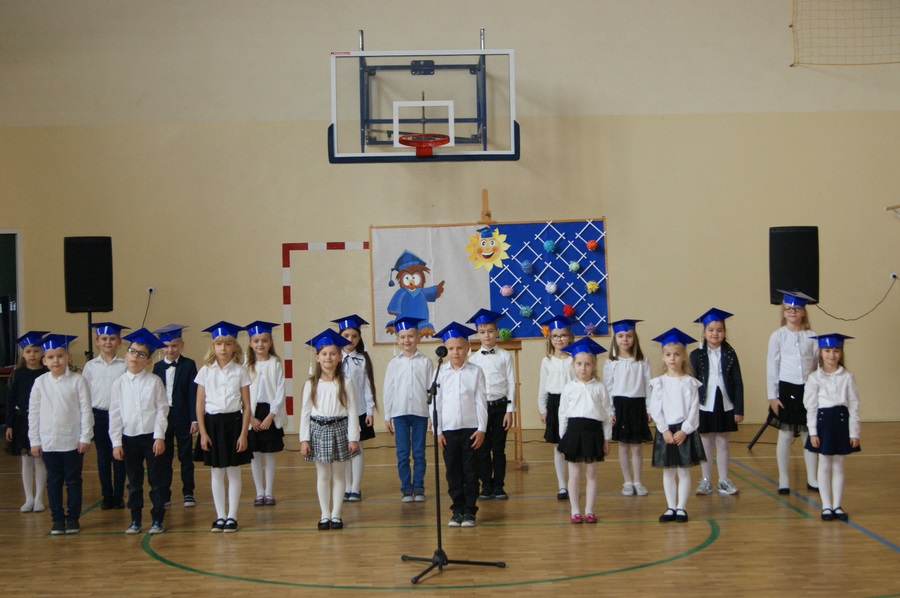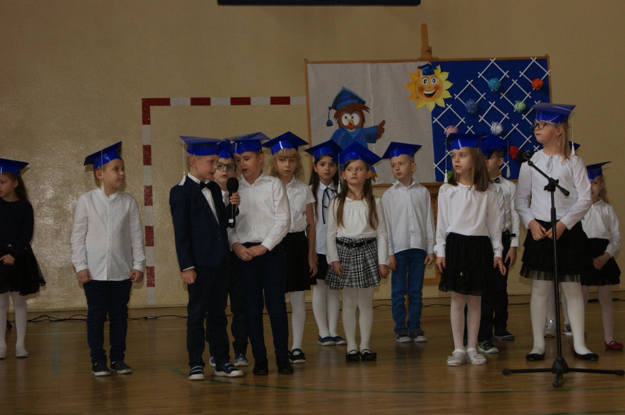 W związku z sytuacją epidemiologiczną rodzice nie mogli uczestniczyć w tej uroczystości, dlatego występ dzieci został nagrany.
