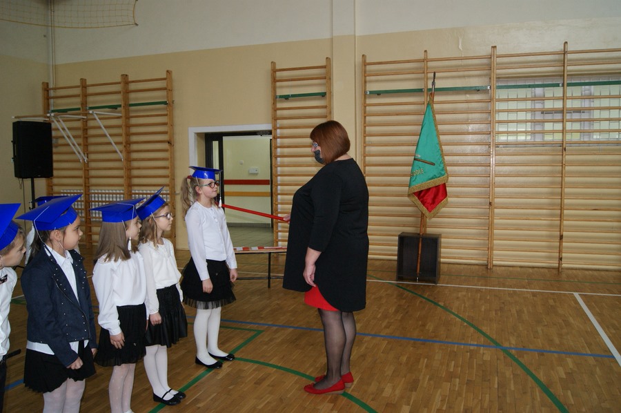 28.10.2020 odbyło się ślubowanie kl. I. W obecności Pani Dyrektor Urszuli Kmoch i wicedyrektor Pani Mirosławy Banaszek oraz przedstawicieli Małego Samorządu uczniowie zaprezentowali swój program artystyczny, na który złożyły się wiersze i piosenki. Dzieci z przejęciem wykonywały swoje kwestie. Potem nastąpił akt ślubowania i pasowania na ucznia.