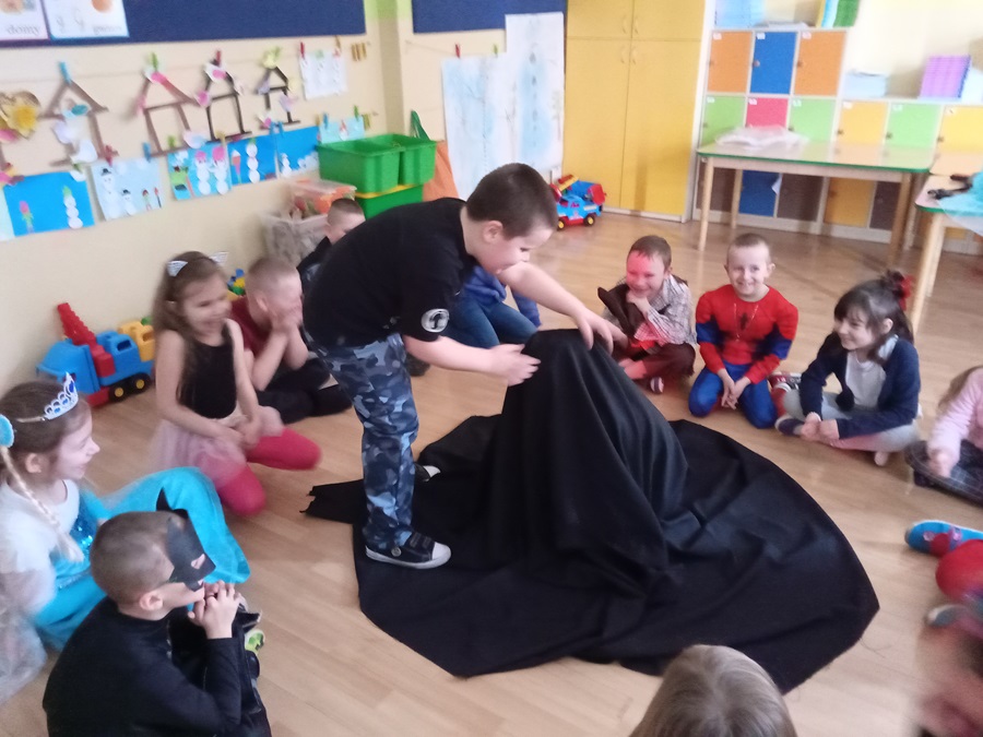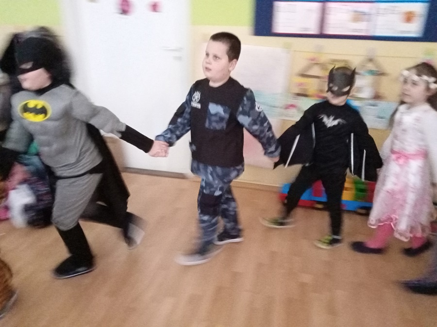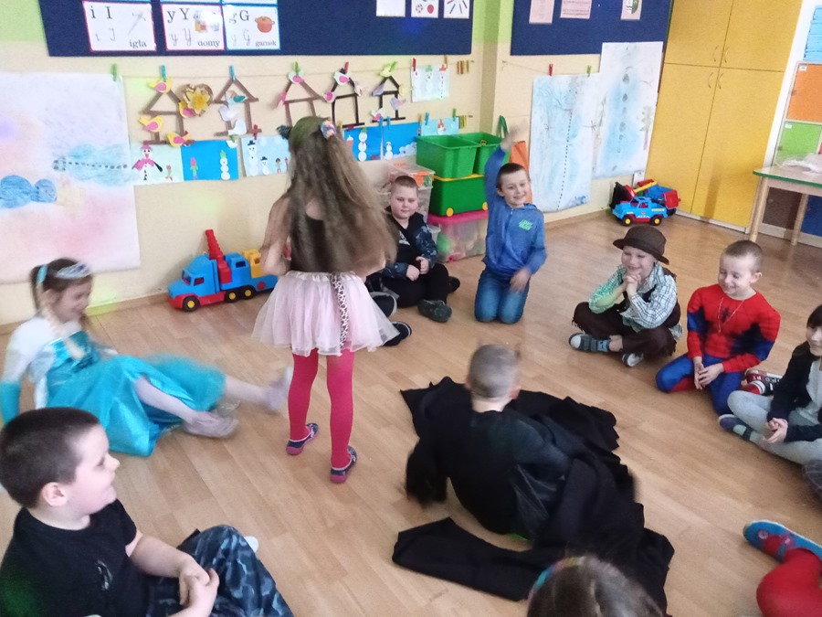 15.02.2021 r. w oddziale przedszkolnym 0b odbył się bal karnawałowy pod hasłem „Zgadnij, kim jestem?" Pojawiły się kotki, tygryski, policjanci, Spider-Man, Batman, były też księżniczki i wróżki. Rozpoznać dzieci było bardzo trudno. Przedszkolaki świetnie się bawiły przy rytmicznej muzyce. Nie zabrakło również konkursów, w których przedszkolaki chętnie uczestniczyły.