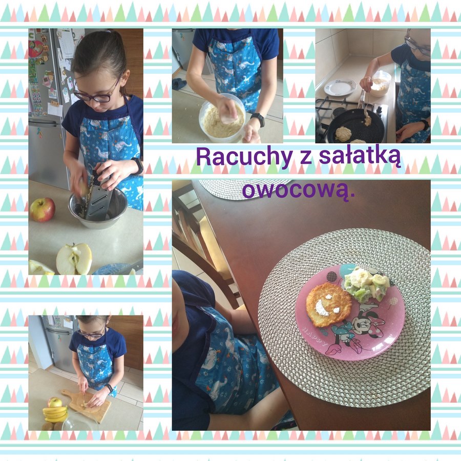 W ramach realizacji programu „Owoce i warzywa” uczniowie klas trzecich przygotowywali w swoich domach różnego rodzaju desery, dania i posiłki z udziałem warzyw i owoców. Zaprezentowali swoje pomysły na śniadanie, podwieczorek lub kolację. Wszystkie propozycje wspaniale wyglądały i z pewnością wszystkim smakowały.