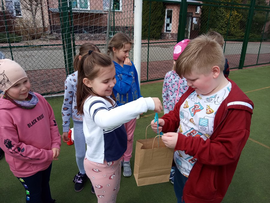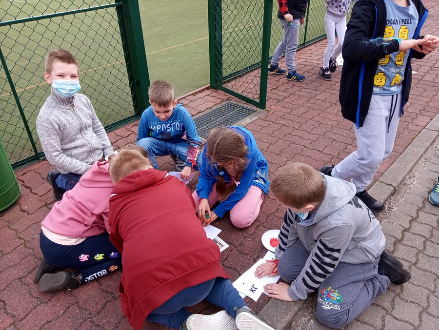 Uczniowie klasy IIb wzięli udział w patriotycznym escape roomie na świeżym powietrzu. Zabawa ta miała na celu przede wszystkim utrwalanie wiadomości dotyczących majowych świąt oraz integrację zespołu klasowego. Uczniowie mieli do wykonania 4 zadania. Poprawne wykonanie każdego z nich skutkowało otrzymaniem części kodu do walizki, w której zamknięta była zasłużona nagroda. Gra była bardzo emocjonująca, a radność po wpisaniu prawidłowego szyfru było ogromna.