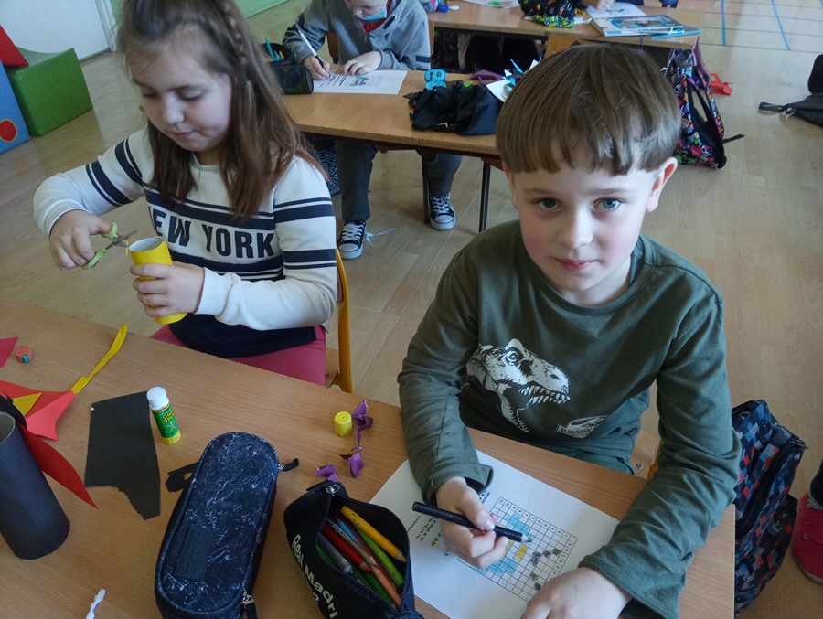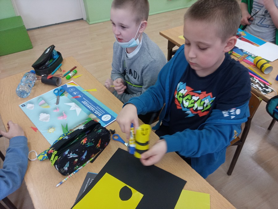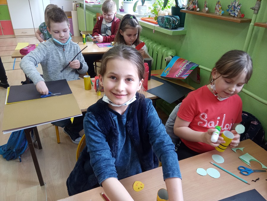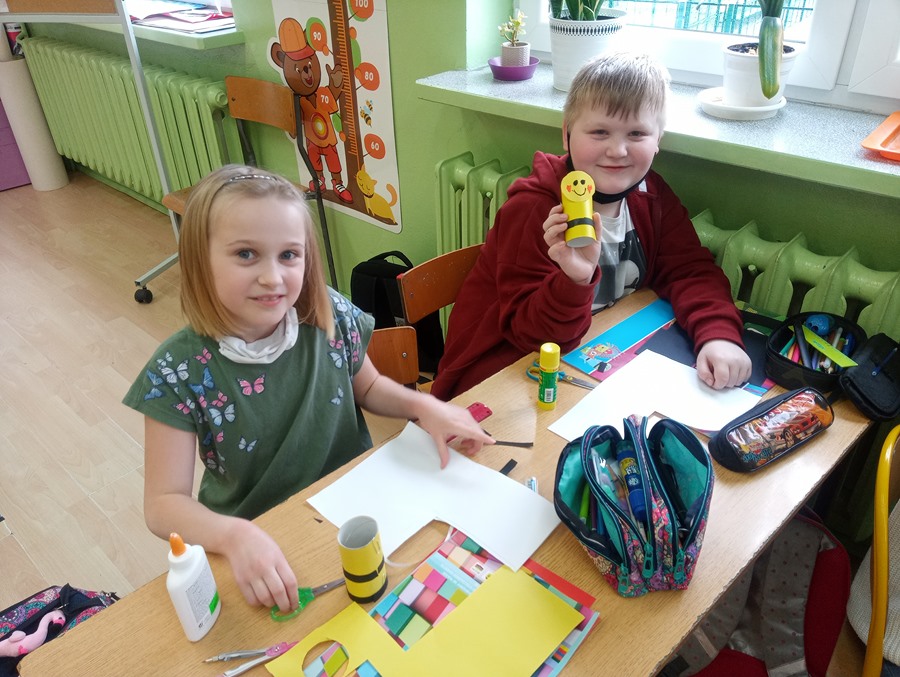 Uczniowie klasy IIb realizując tematy dotyczące owadów, bliżej przyjrzeli się życiu pszczół. Wybrali się na wirtualną wycieczkę do pasieki, po której oprowadziła ich animowana pszczoła - Kaja. Mieli także możliwość zobaczyć i dotknąć przedmioty, które pszczelarze wykorzystują w swojej codziennej pracy. Podczas tych zajęć uczniowie wysłuchali wielu ciekawostek na temat pszczół, wykonali pracę techniczną oraz poćwiczyli kodowanie.