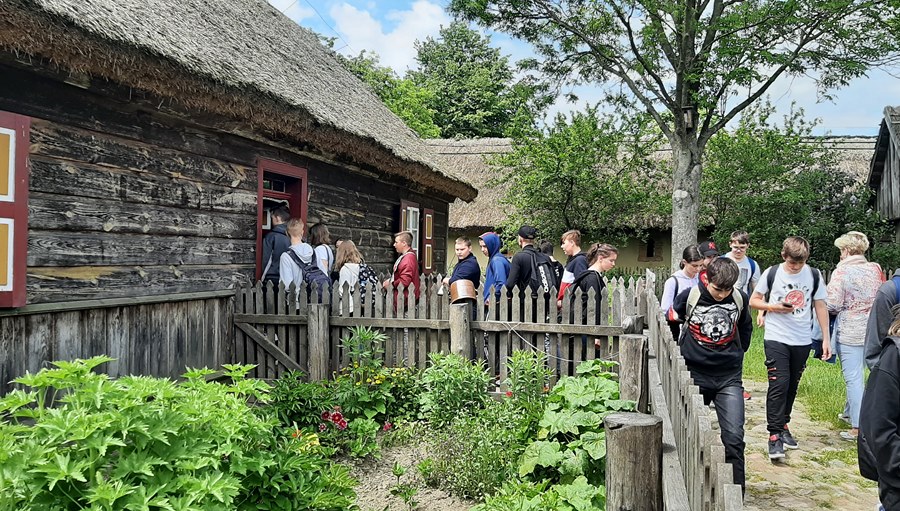 Dnia 1 czerwca 2021r. klasa 7b i 7c udała się na wycieczkę do Muzeum Wsi Mazowieckiej w Sierpcu. Doskonałym przewodnikiem okazała się p. Julita, która bardzo ciekawie opowiadała o historii muzeum oraz zabudowaniach i eksponatach znajdujących się na terenie skansenu. Uczniowie chętnie zadawali pytania i zwiedzali poszczególne domostwa. Podróż była doskonałym czynnikiem do integracji rówieśników.