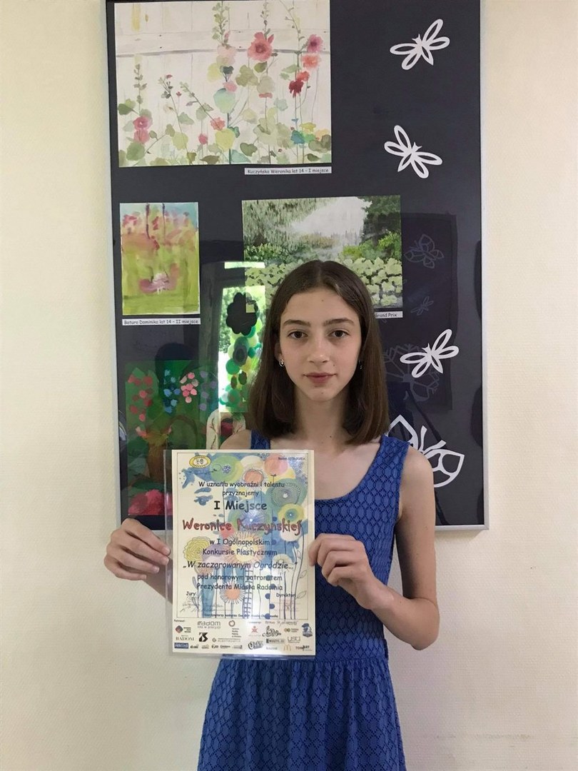 Miło nam poinformować, że Weronika Kuczyńska z kl. VIII zdobyła I miejsce w I Ogólnopolskim Konkursie Plastycznym „W zaczarowanym ogrodzie…” zorganizowanym przez Publiczny Ogródek Jordanowski w Radomiu.