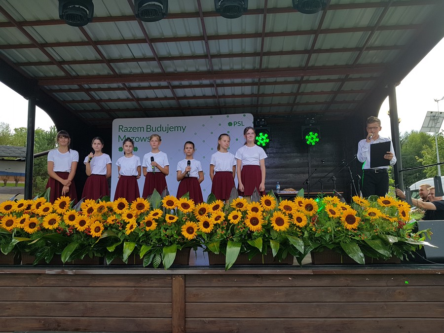 22 sierpnia 2021 r. uczniowie naszej szkoły wystąpili na Mazowieckich Dożynkach PSL i Dożynkach Gminnych.