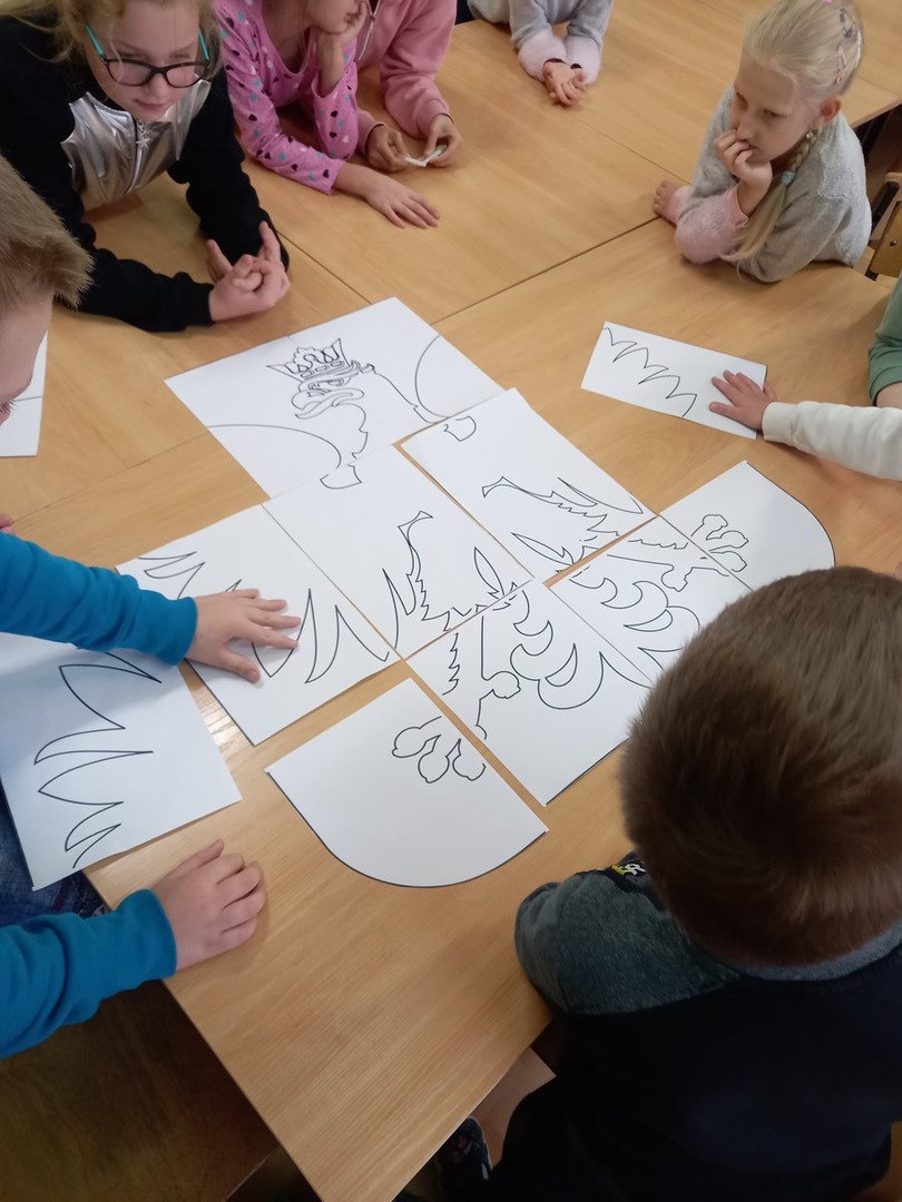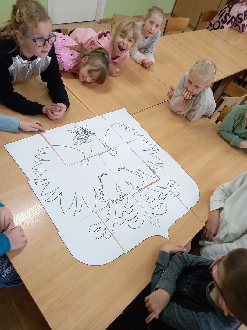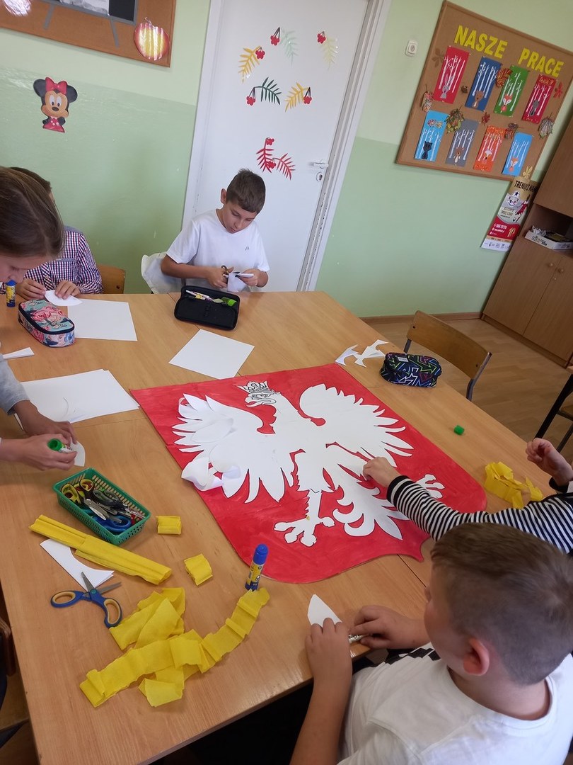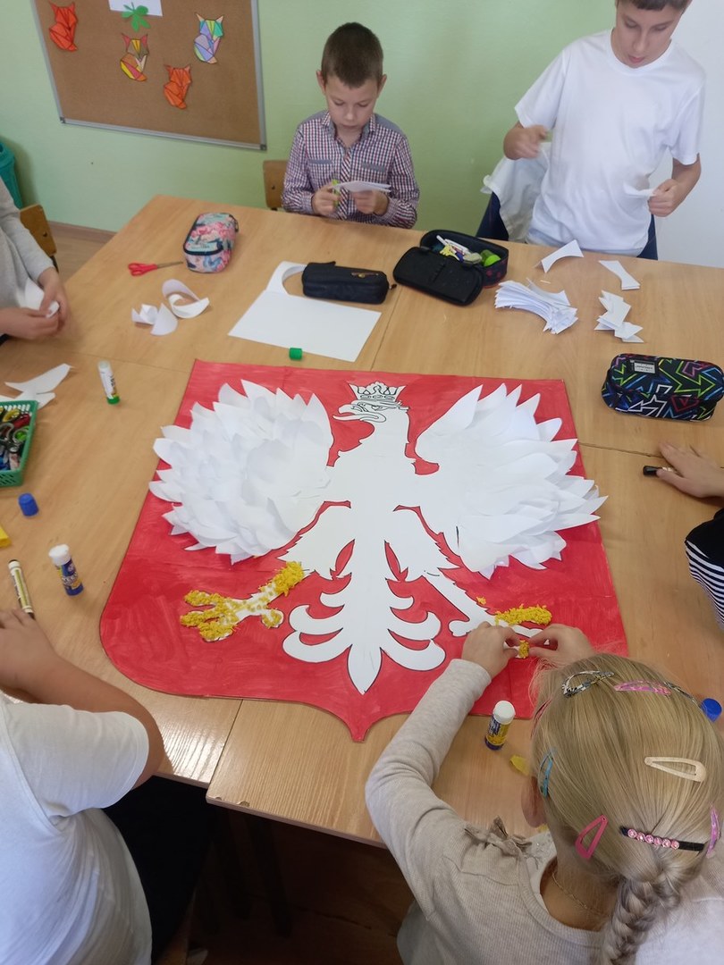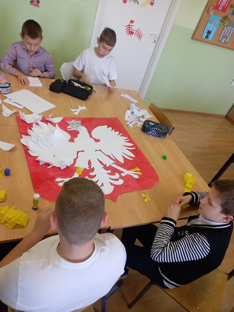 Z okazji Odzyskania Niepodległości przez Polskę uczniowie w świetlicy szkolnej wzięli udział w zajęciach poświęconych historii Polski. Podczas zajęć wykonali duże godło Rzeczypospolitej Polskiej.