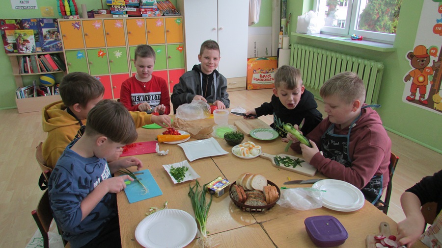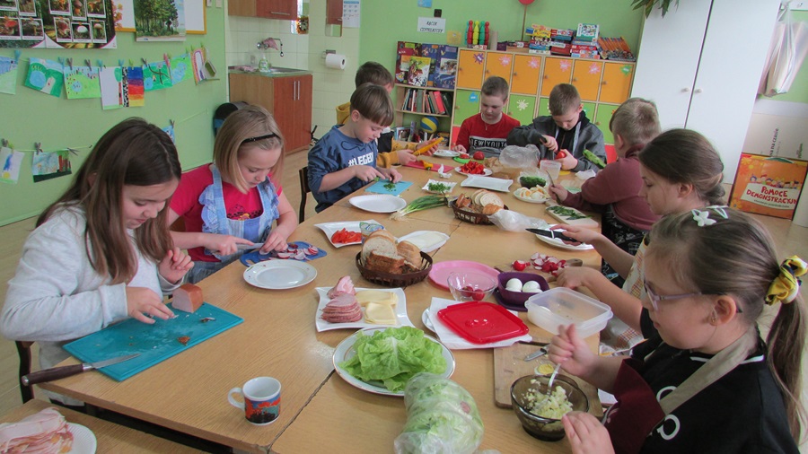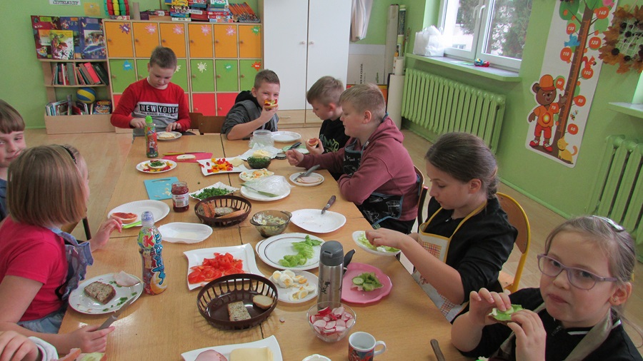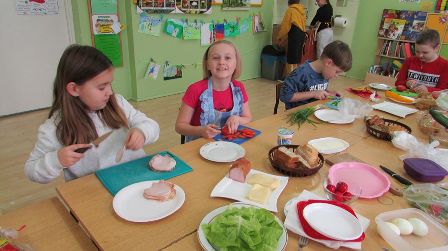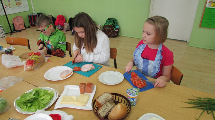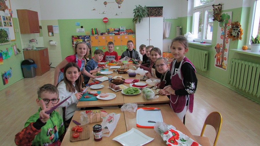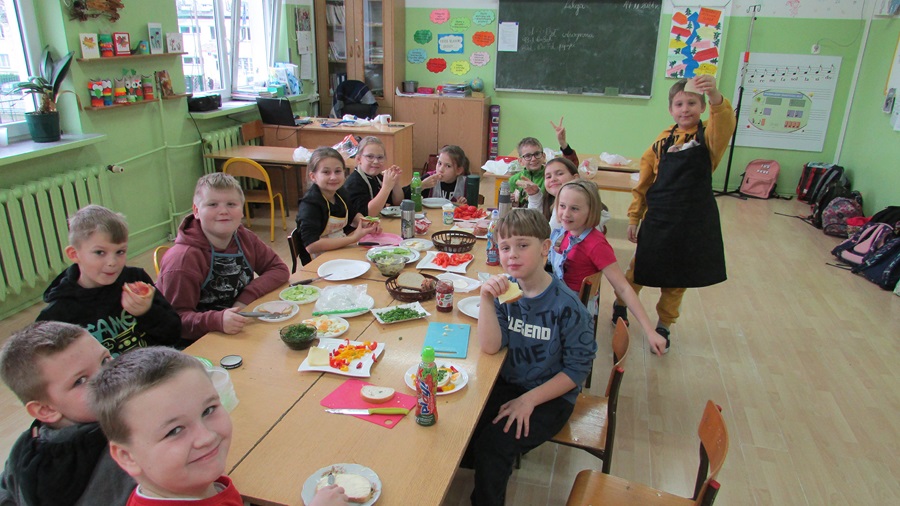 18 listopada uczniowie klasy IIIb w ramach „Programu dla szkół” przygotowali smaczne, zdrowe i pożywne drugie śniadanie. Celem wspólnego przyrządzenia posiłku było promowanie zdrowego odżywiania oraz prawidłowych nawyków żywieniowych. Uczniowie z ogromnym apetytem zjedli to, co sami przygotowali.
