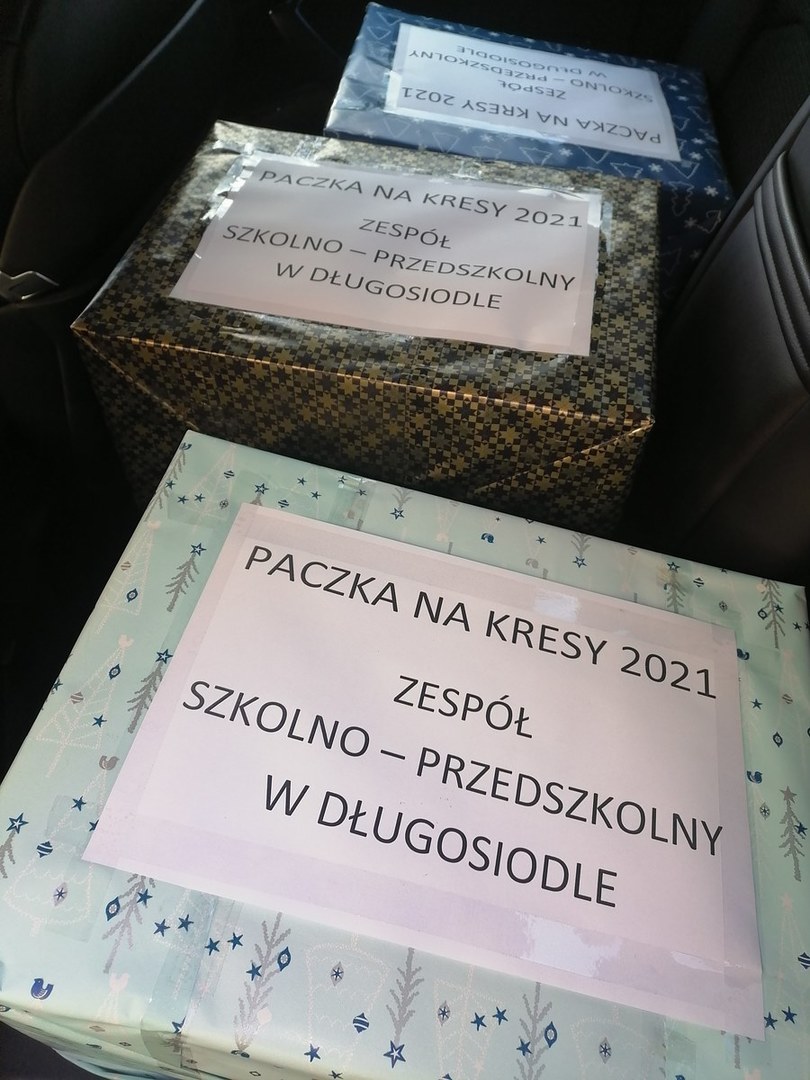 Pierwsze przedświąteczne wsparcie przygotowane przez społeczność Zespołu Szkolno - Przedszkolnego w Długosiodle wyruszyło w drogę do naszych Rodaków mieszkających na terenie Litwy i Łotwy w ramach akcji „Paczka na Kresy”. Nasza pomoc trafi do ubogich seniorów, osób samotnych, rodzin w trudnej sytuacji materialnej, dzieci i instytucji takich jak szkoły czy ośrodki skupiające Polaków.