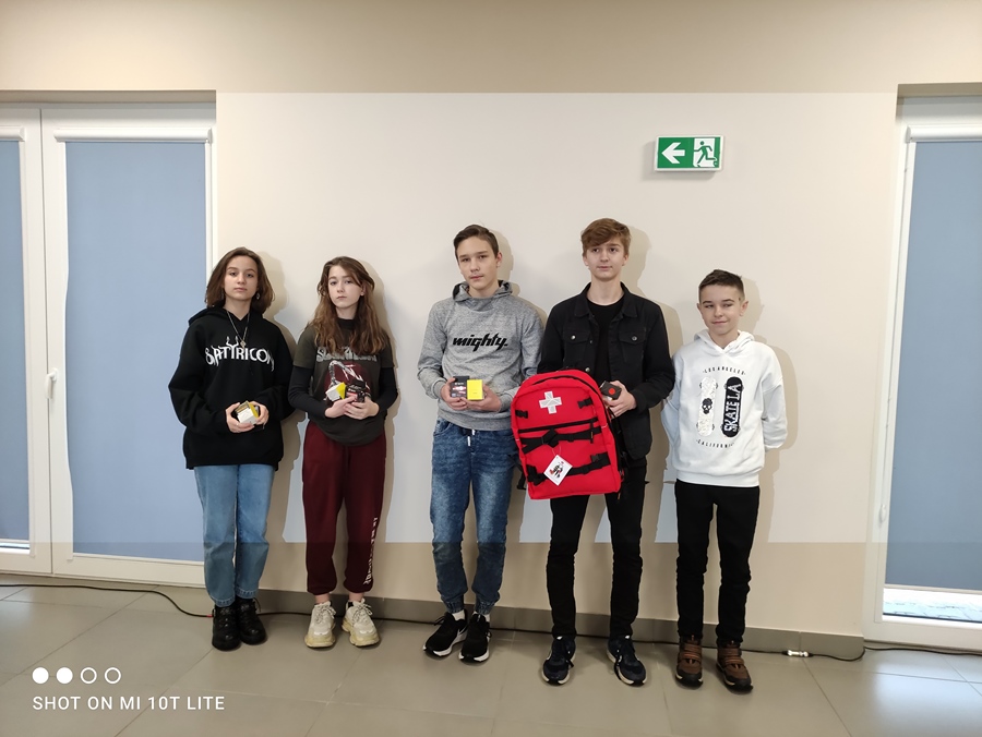W konkursie naszą szkołę reprezentowali: Roksana Urraso z kl. VIIIc, Lena Kuczyńska z kl. VIIIc, Benjamin Kozij z kl. VIIIa, Piotr Jusiński z kl. VIIIa oraz Karol Zadrożny z kl. VIIIa. Nasz zespół zajął pierwsze miejsce uzyskując łącznie 96 punktów.