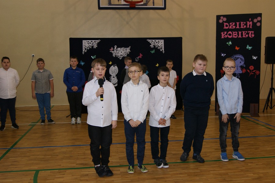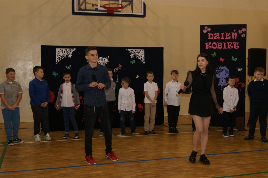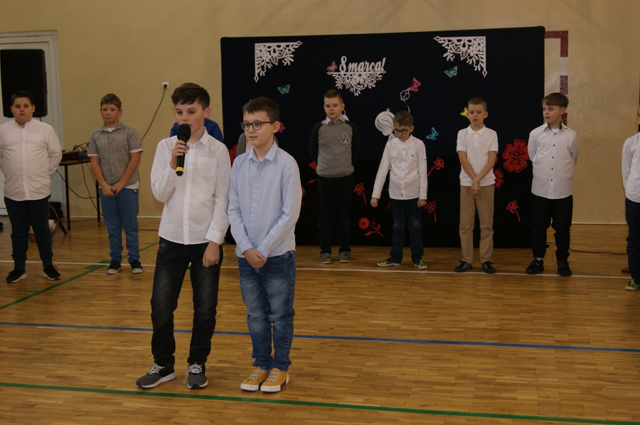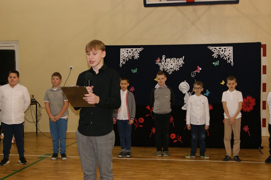 Z okazji Dnia Kobiet Samorząd Uczniowski przygotował dla wszystkich Pań krótki program artystyczny, który miał uprzyjemnić ten wyjątkowy dzień. Męskie grono wierszem i piosenką przekazało życzenia płci pięknej.