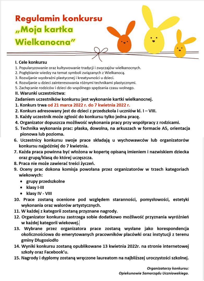 Regulamin konkursu „Moja kartka Wielkanocna”