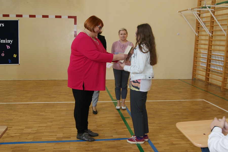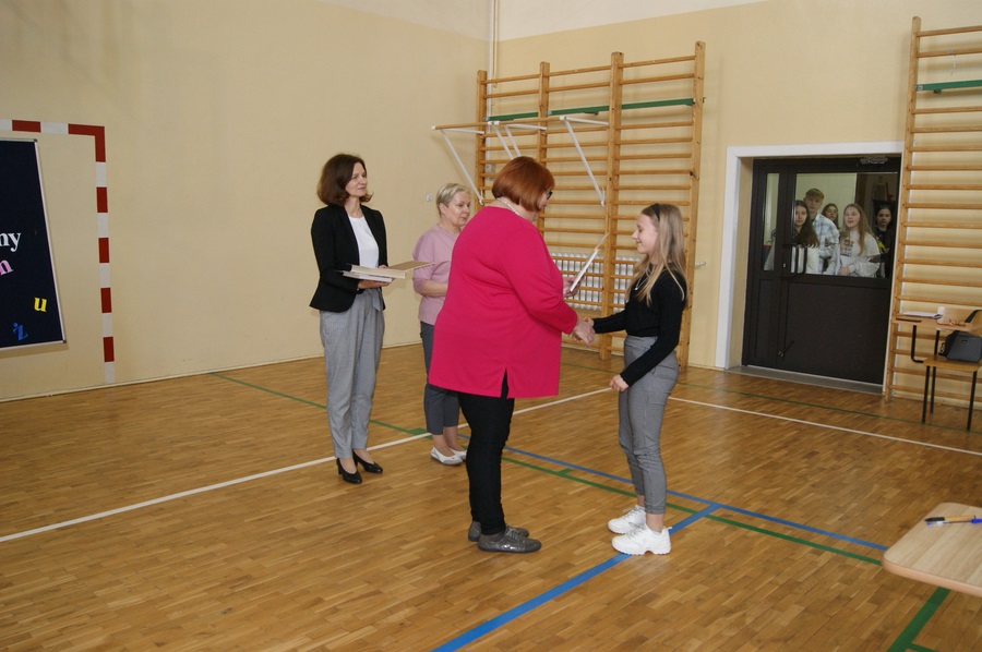 Laureaci otrzymali z rąk dyrektor szkoły Urszuli Kmoch dyplomy oraz nagrody książkowe.
