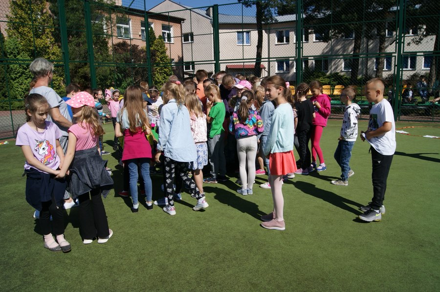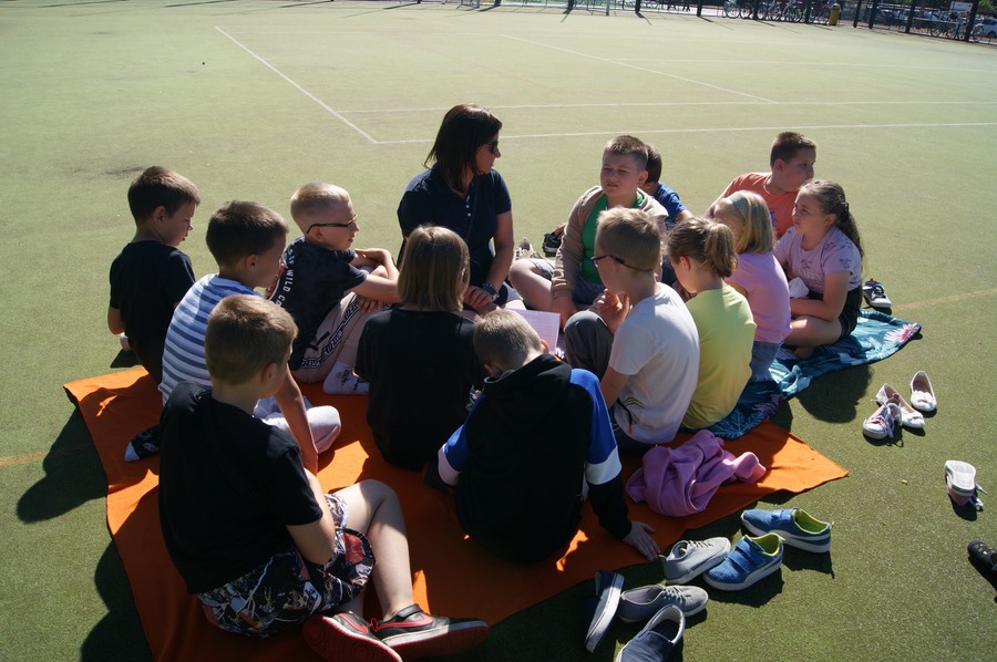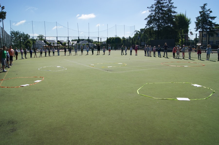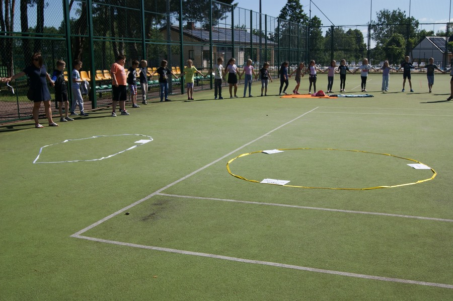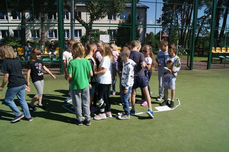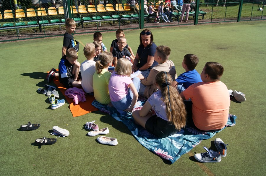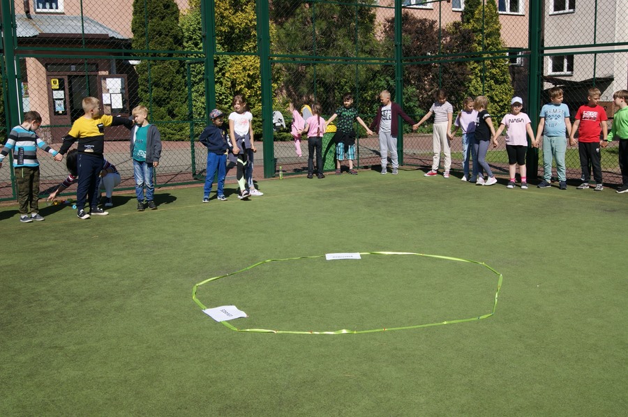 Mając na uwadze zbliżające się wakacje, często czas podwyższonego ryzyka wystąpienia niepożądanych zachowań wobec nieletnich, 22.06.2022 r. w klasach I-III przeprowadzono pogadankę na temat bezpiecznego kontaktu z osobą dorosłą. Uczniowie wzięli też udział w zabawie profilaktycznej „Bezpieczne kręgi” zorganizowanej na boisku szkolnym przez wychowawców klas.