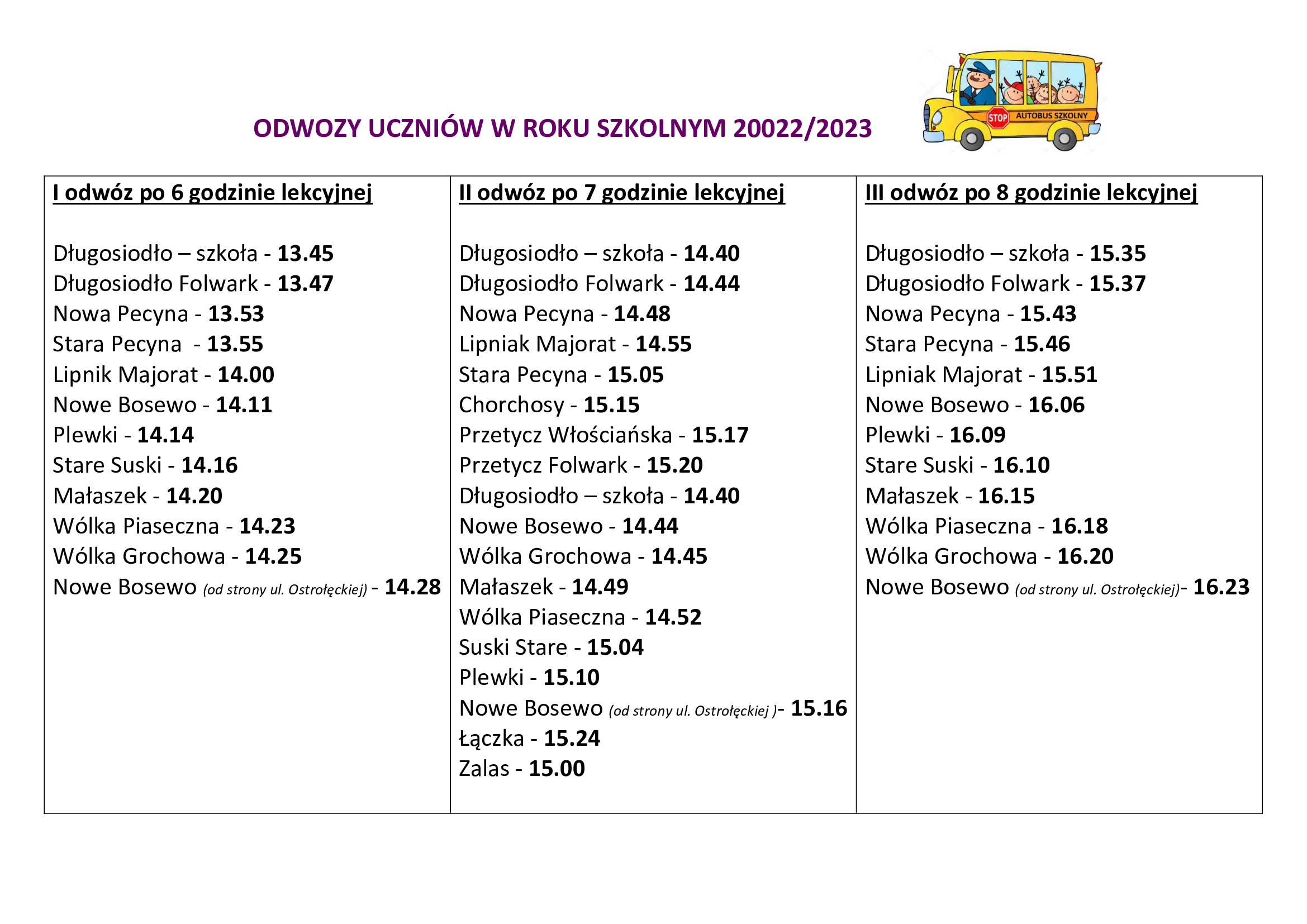 Dowozy i odwozy uczniów w roku szkolnym 2022/2003