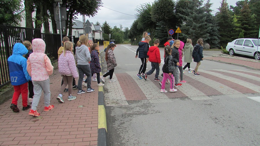W ramach tematów dotyczących bezpieczeństwa na drodze uczniowie klas I - III wraz z nauczycielami wybrali się na spacer po swojej miejscowości. Celem wyjścia było obserwowanie ruchu drogowego oraz utrwalenie zasad prawidłowego i bezpiecznego poruszania się po drodze. Podczas wyjścia uczniowie zwracali szczególną uwagę na znaki drogowe znajdujące się na w pobliżu szkoły i przejść dla pieszych.
