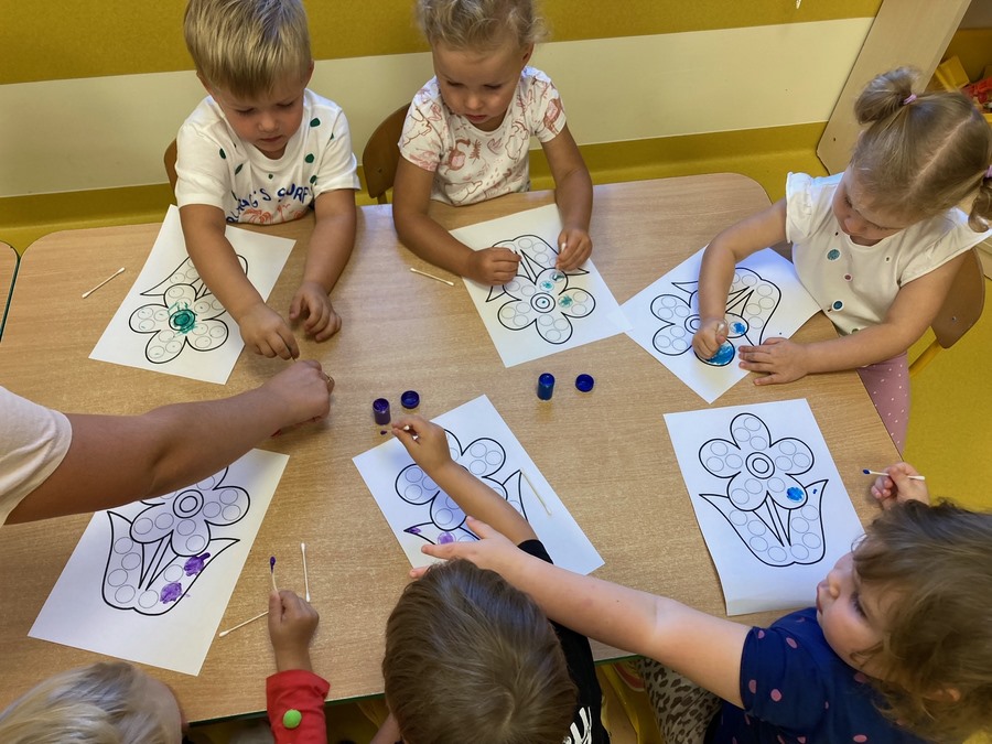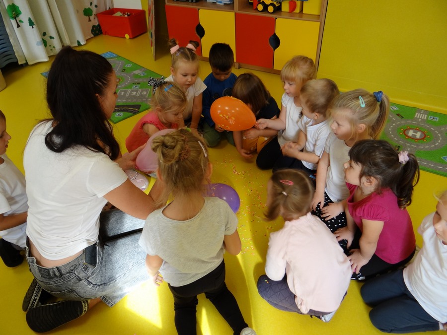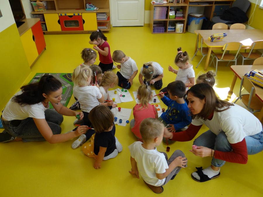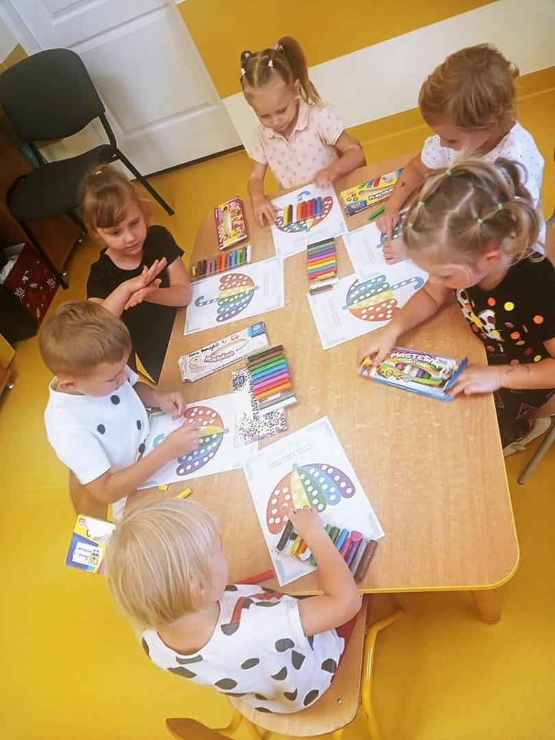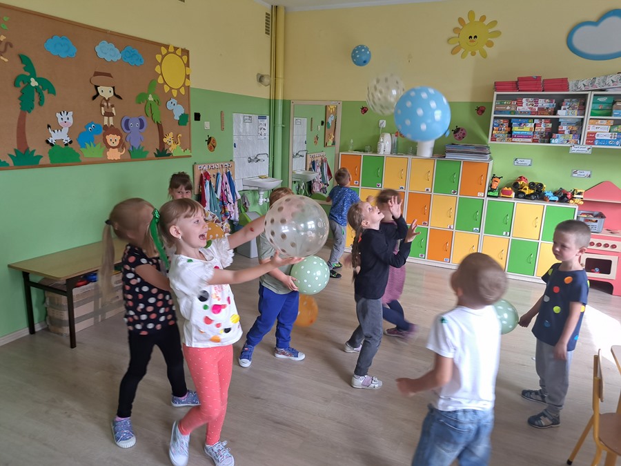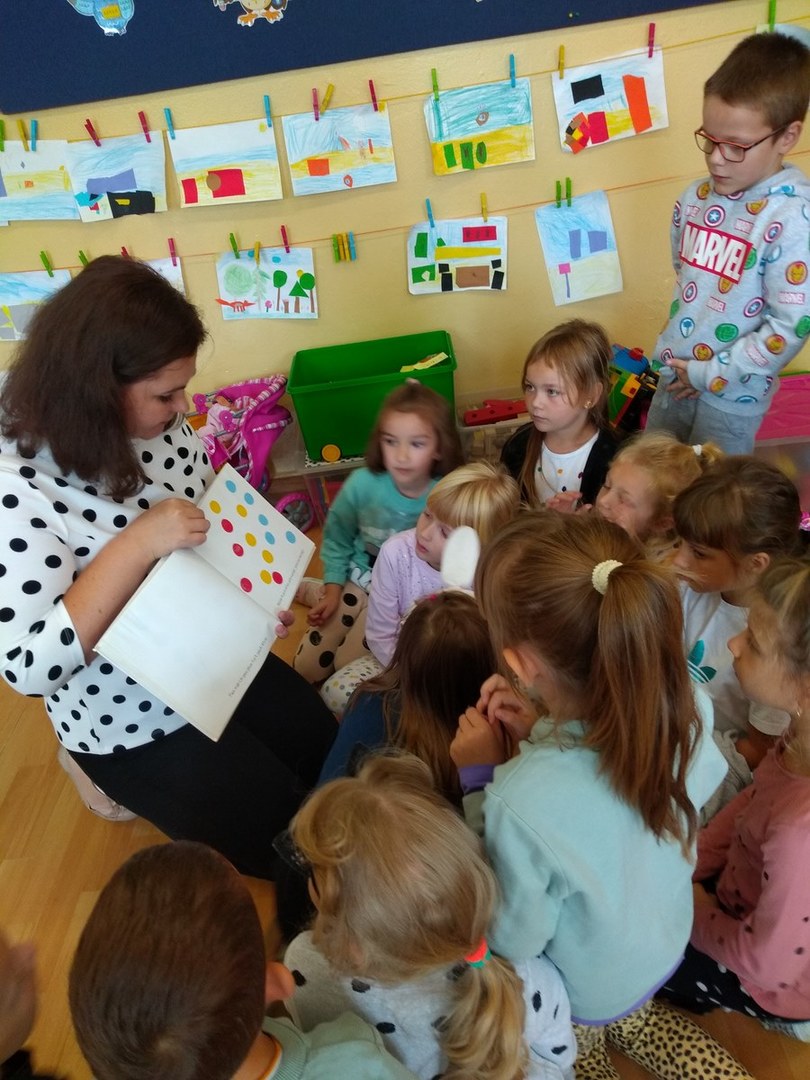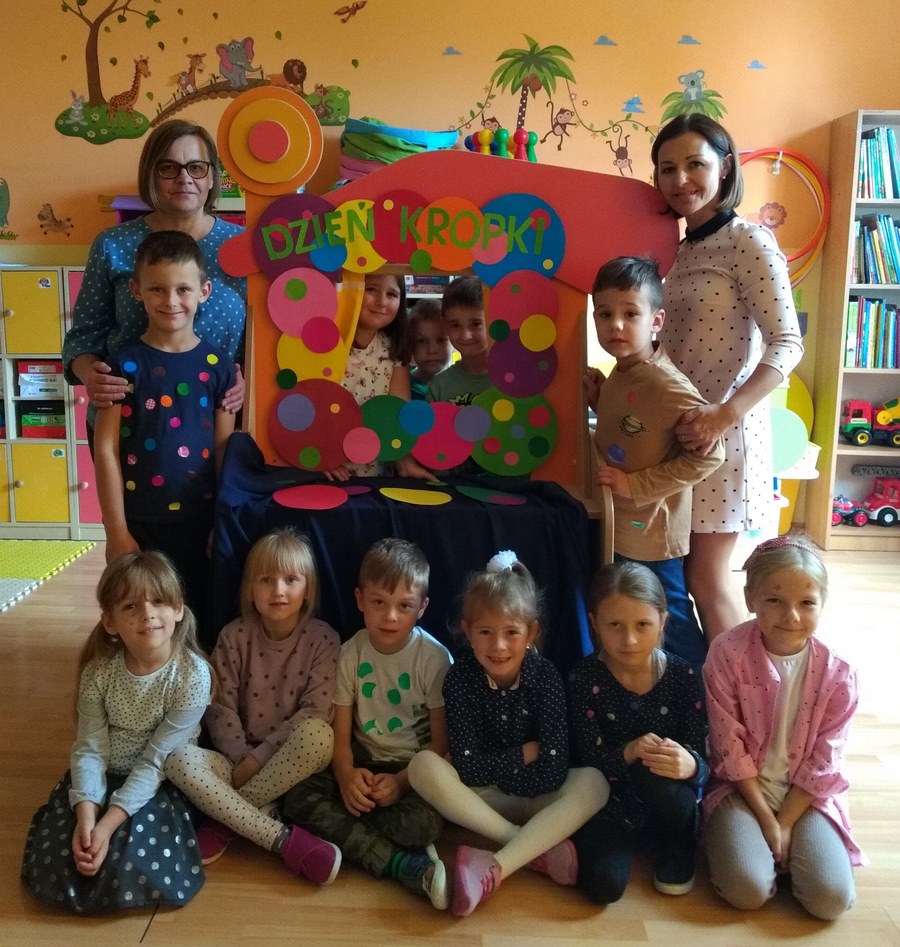 „Międzynarodowy Dzień Kropki" obchodzony jest na całym świecie 15 września. Jest to święto, które ma na celu pobudzanie kreatywności, pomysłowości, talentu i odwagi w pokonywaniu trudności. Dzieci i wychowawczynie tego dnia przyszli ubrani w grochy, kropki i groszki. Świętowanie rozpoczęli od zapoznania się z Vashti. Dzieci wysłuchały jej historii, a także obejrzały krótki filmik o tytułowej "Kropce". Kolejnym punktem tego dnia było uczestnictwo w wielu zabawach z kropką w roli głównej - przedszkolaki wykonywały różne plastyczne "dzieła", brały udział w "kropkowych" konkurencjach sportowych oraz robiły sobie zdjęcia w ozdobionych kropkami fotobudkach. To był naprawdę kropkastyczny dzień.