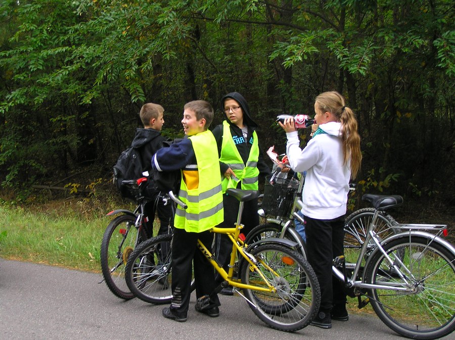 W dniu 25.09.2012 roku odbyła się wycieczka rowerowa klas piątych do Zamościa. Spod szkoły wyjechaliśmy o godzinie 10.00. Jechaliśmy w kolumnie. Na jej początku był Pan Darek Kęcki - tata jednej z naszych koleżanek, w dalszej części Pani Julita Gąsiewska i rodzice. Nad bezpieczeństwem wszystkich czuwał pan Wojciech Trentowski, który krążył od początku do końca kolumny. Wszyscy posiadali odblaskowe kamizelki, które sprawiały, że byliśmy dobrze widoczni i bezpieczni na drodze.